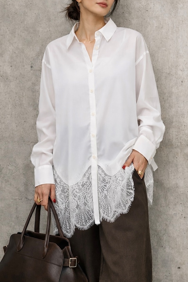 31871 トップス サイズ 着丈85cm 肩幅52cm バスト108cm 袖丈55cm 袖口22cm 裾周り116cm 素材 本体 ポリエステル59% レーヨン41% 裾レース ナイロン100% 裾のレースも可愛くてシルエットが女性らしい雰囲気を醸し出し、合わせやすいカラーで、1枚持っていれば重宝するおススメアイテムです。 レースカラーは本体同色です。 お取り寄せは納期5日前後頂戴しております