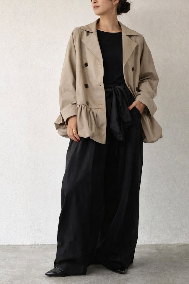 70871 アウター サイズ 身丈前:60cm 身丈後:67cm 身幅:50cm 裄丈:76cm 素材 綿70% ポリエステル30% 別布 ポリエステル100% チュールレイヤードのショートトレンチジャケット お取り寄せは納期5日前後頂戴しております。