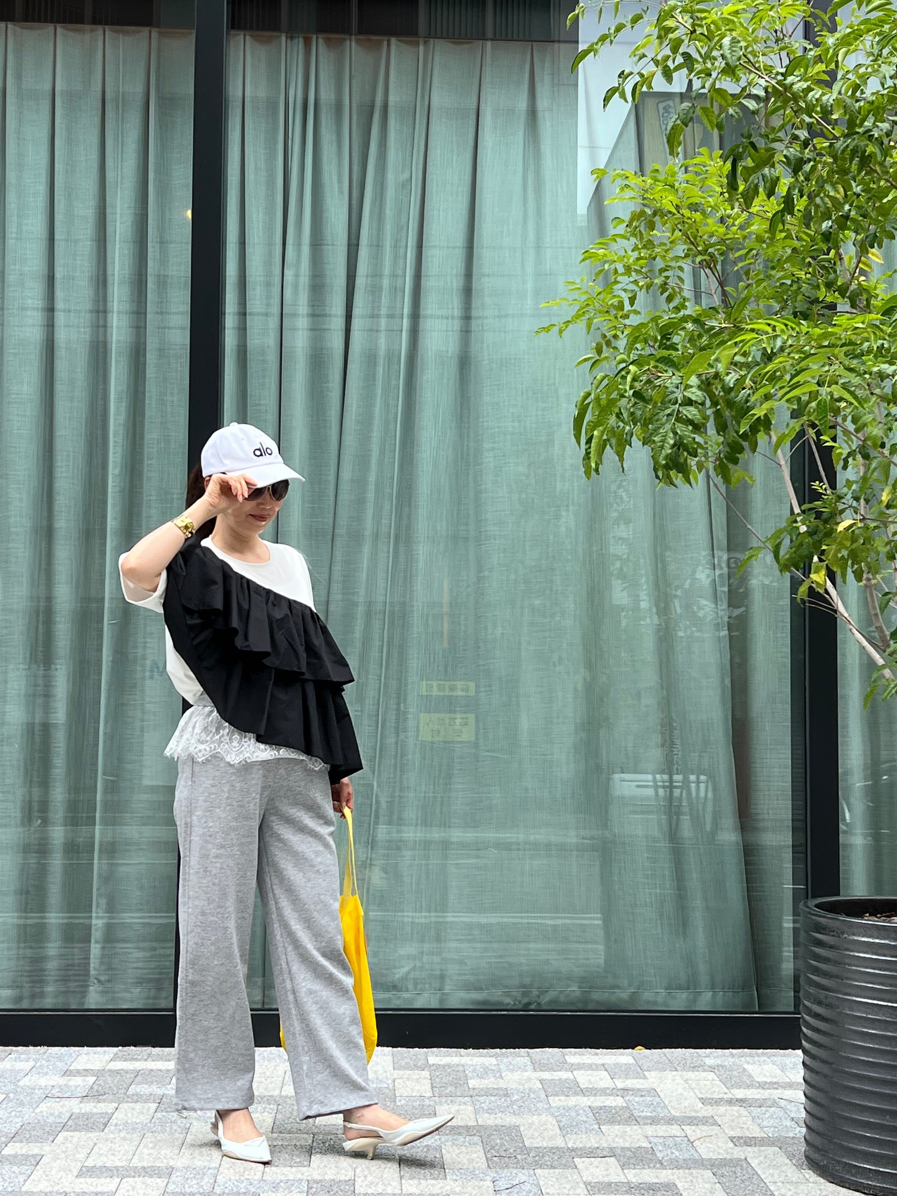 シンプルなカットソーに異素材フリルをレイヤードしたようなデザインで、1枚でスタイリングが完成します。