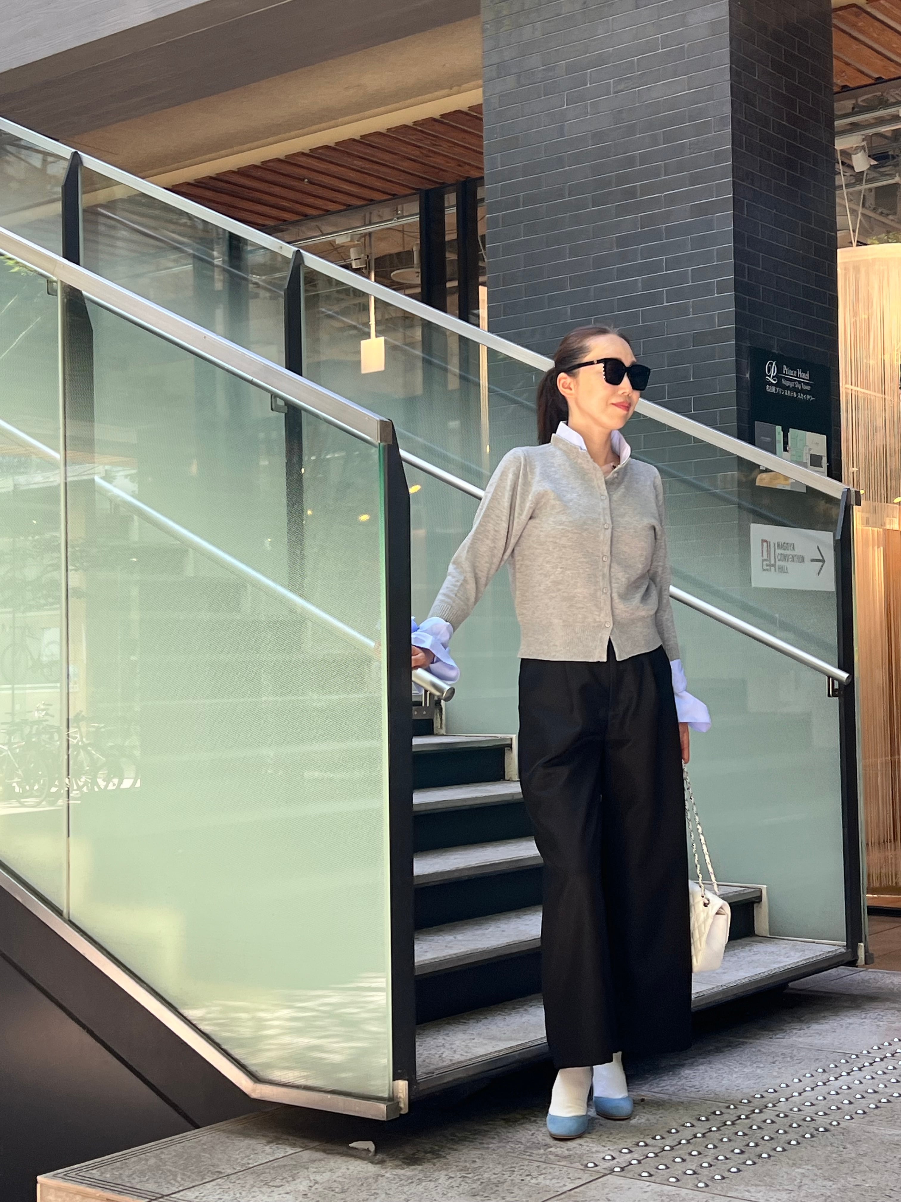 短丈のトップスやインナーをインしてジャケットを羽織るスタイリングがおすすめ
