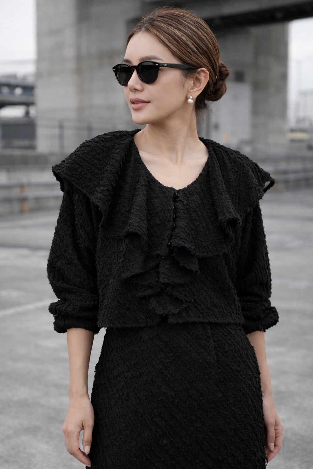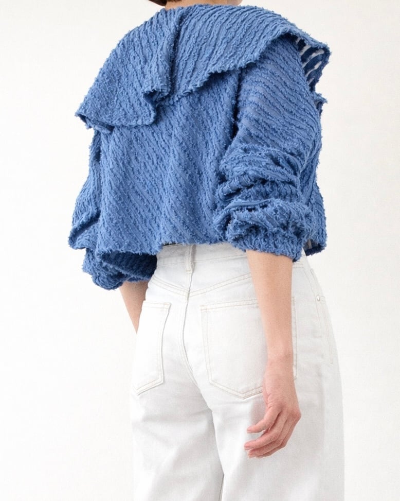 シアーミニフリンジジャガード使いがオシャレなトップス