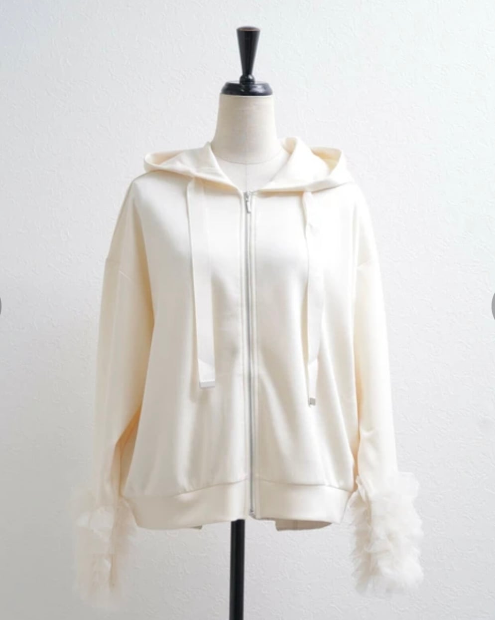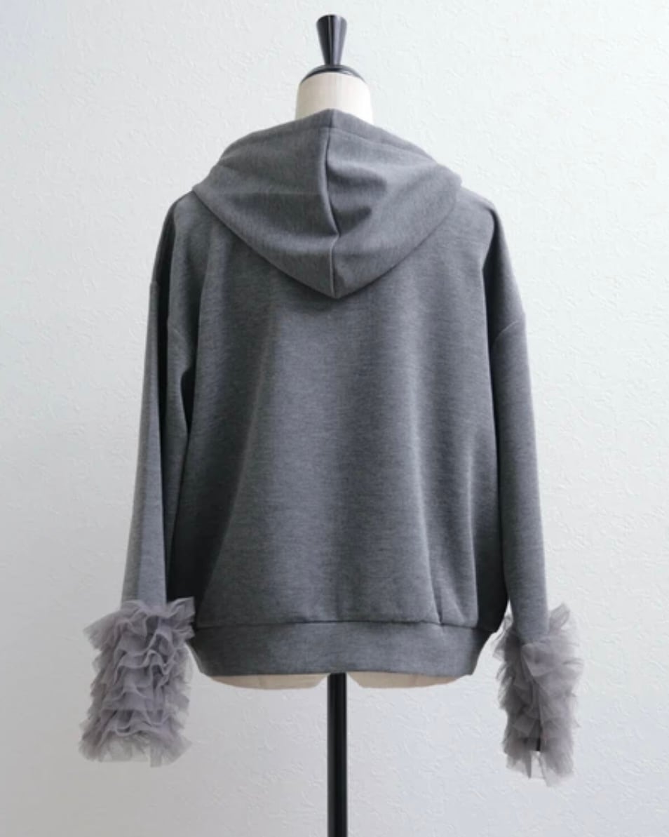 袖口のチュールフリルがガーリーなジップアップパーカー