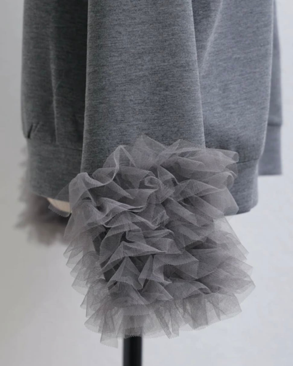 袖口に他tプリのチュールフリルを施すことでガーリーな印象をプラス