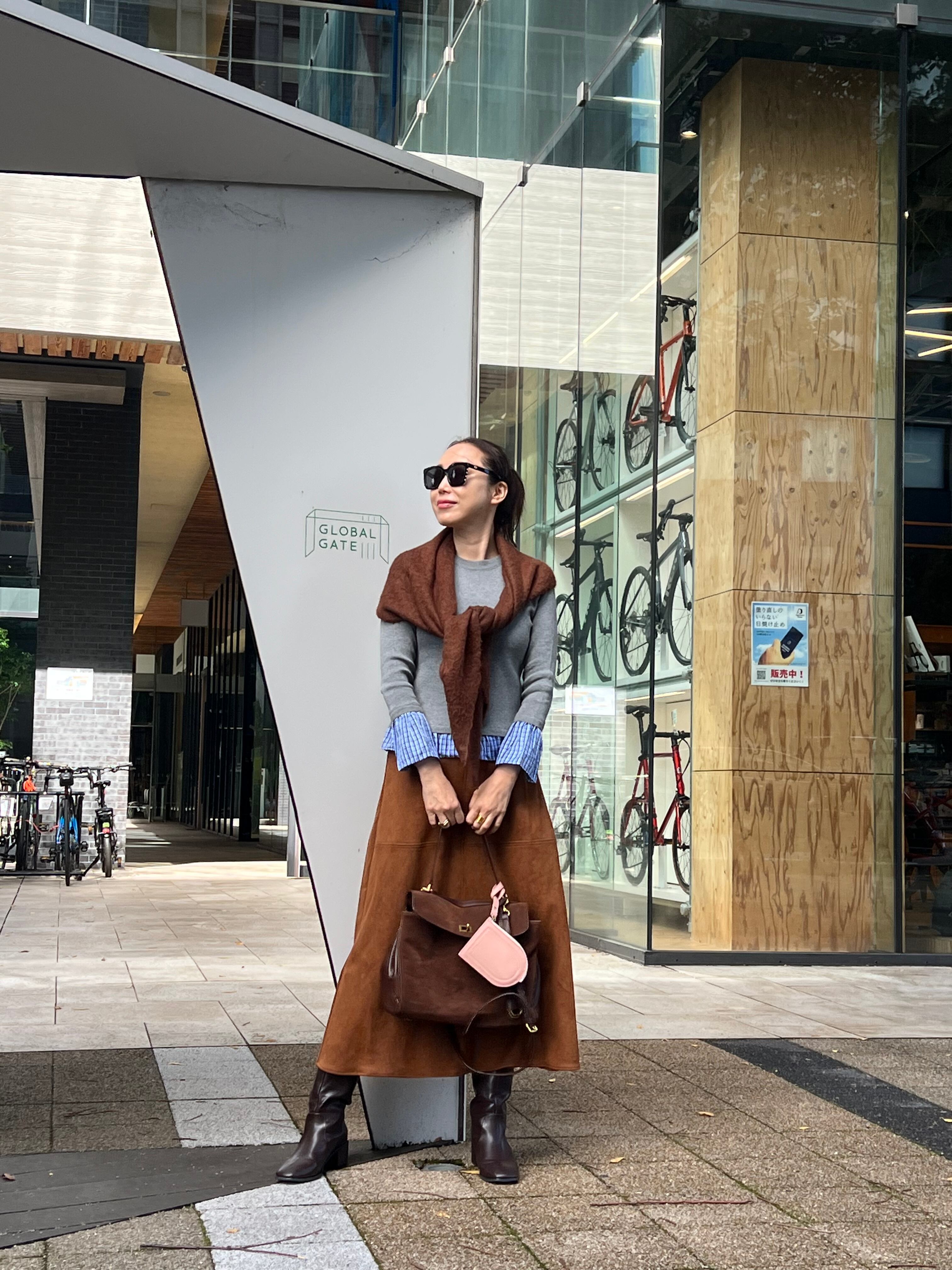 ニットやブラウスはもちろん、カジュアルなスウェットとも好相性で、