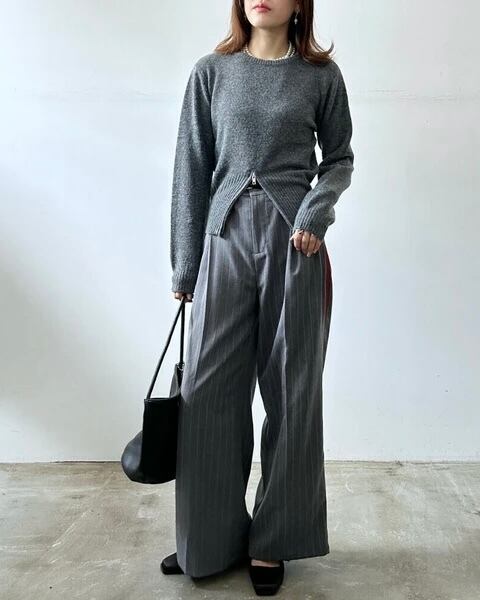杢調の風合いが上品な、裾ZIPデザインのニットプルオーバー。
