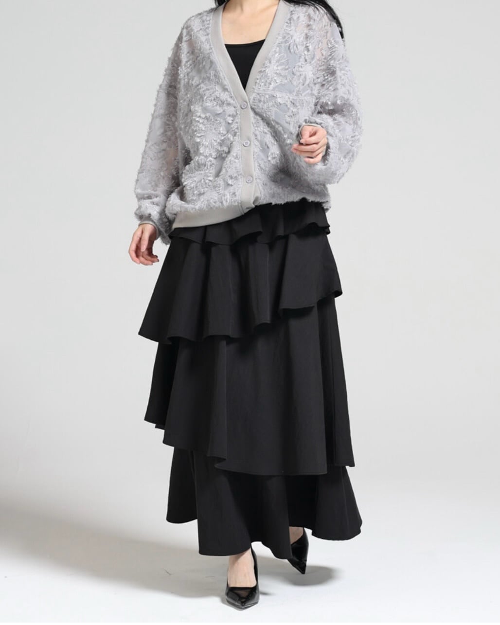 シアー素材の上に柔らかく揺れるシャギー風テクスチャが、着るだけでスタイリングに奥行きをプラスしてくれます。
