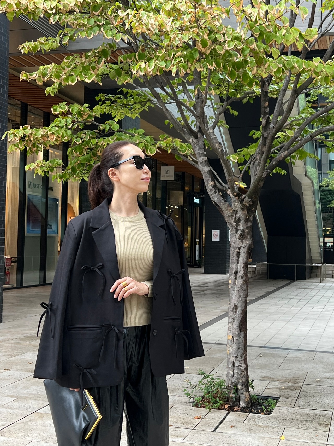 リボン付きがオシャレなテーラードジャケットです。