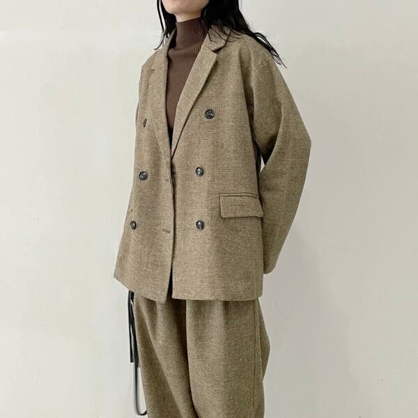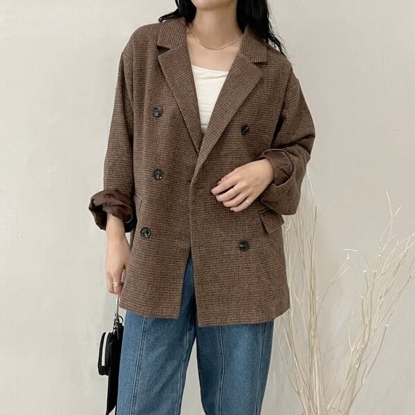 トレンドのチェックにシックな印象が魅力のテーラードジャケット