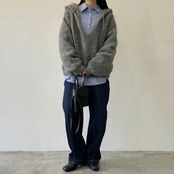 インナーにカラーニット、Tシャツ、シャツをインしてバリエーション豊富