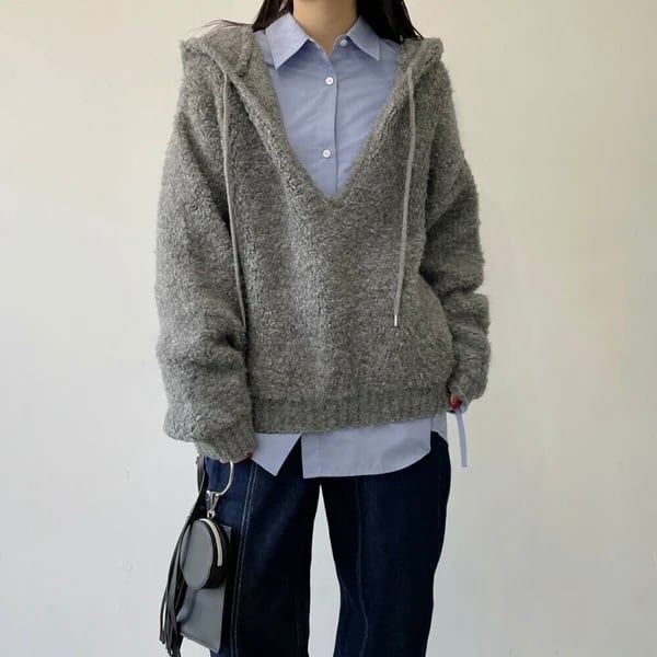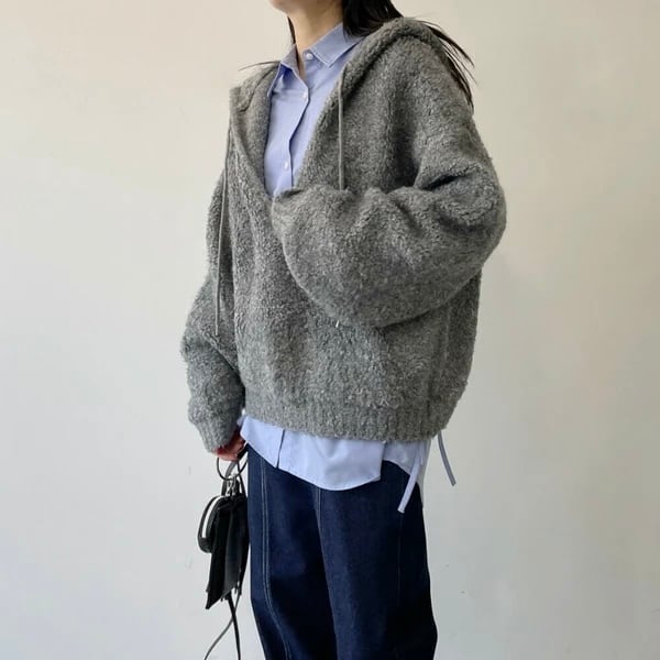 心地の良いブークレ糸でパイル状に編んだニットがやわらかい
