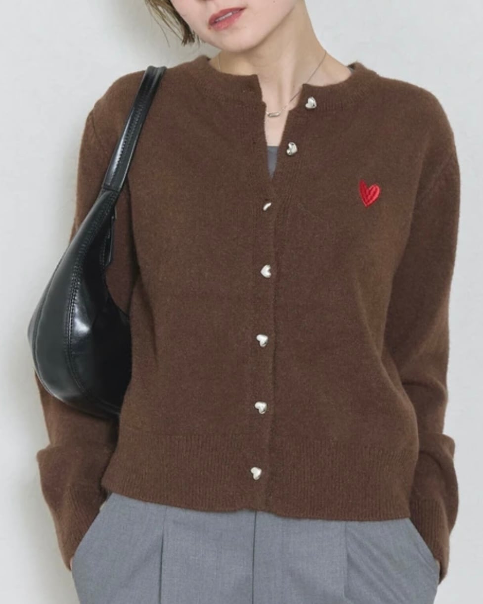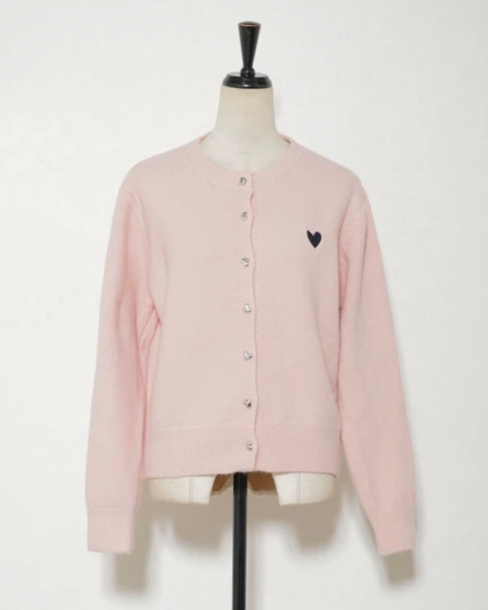 胸元のハートの刺繍、ハートのボタンとハートにあふれたカーディガン