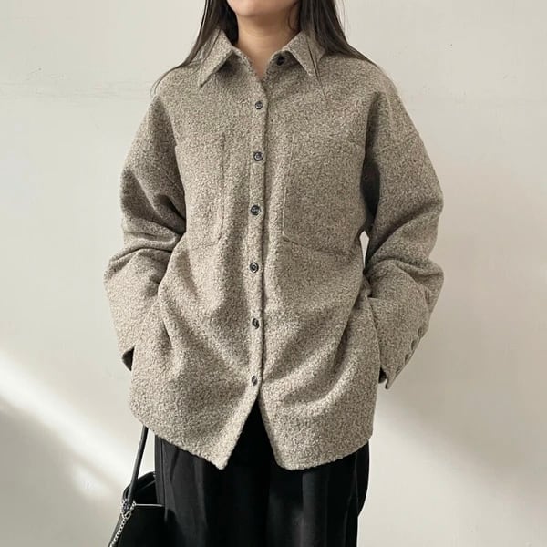 表面感のあるループツイード素材で仕立てた、シーズンムード漂うビッグカフスシャツ。