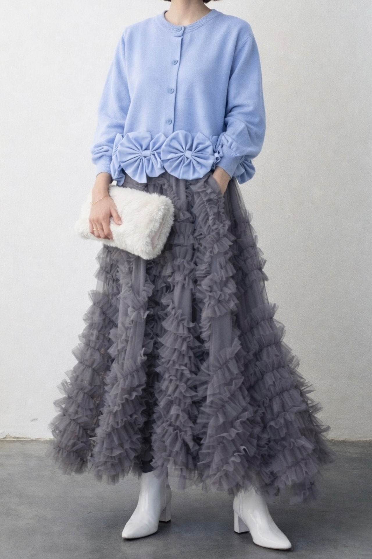 大きなリボンモチーフが目を惹くカーディガン