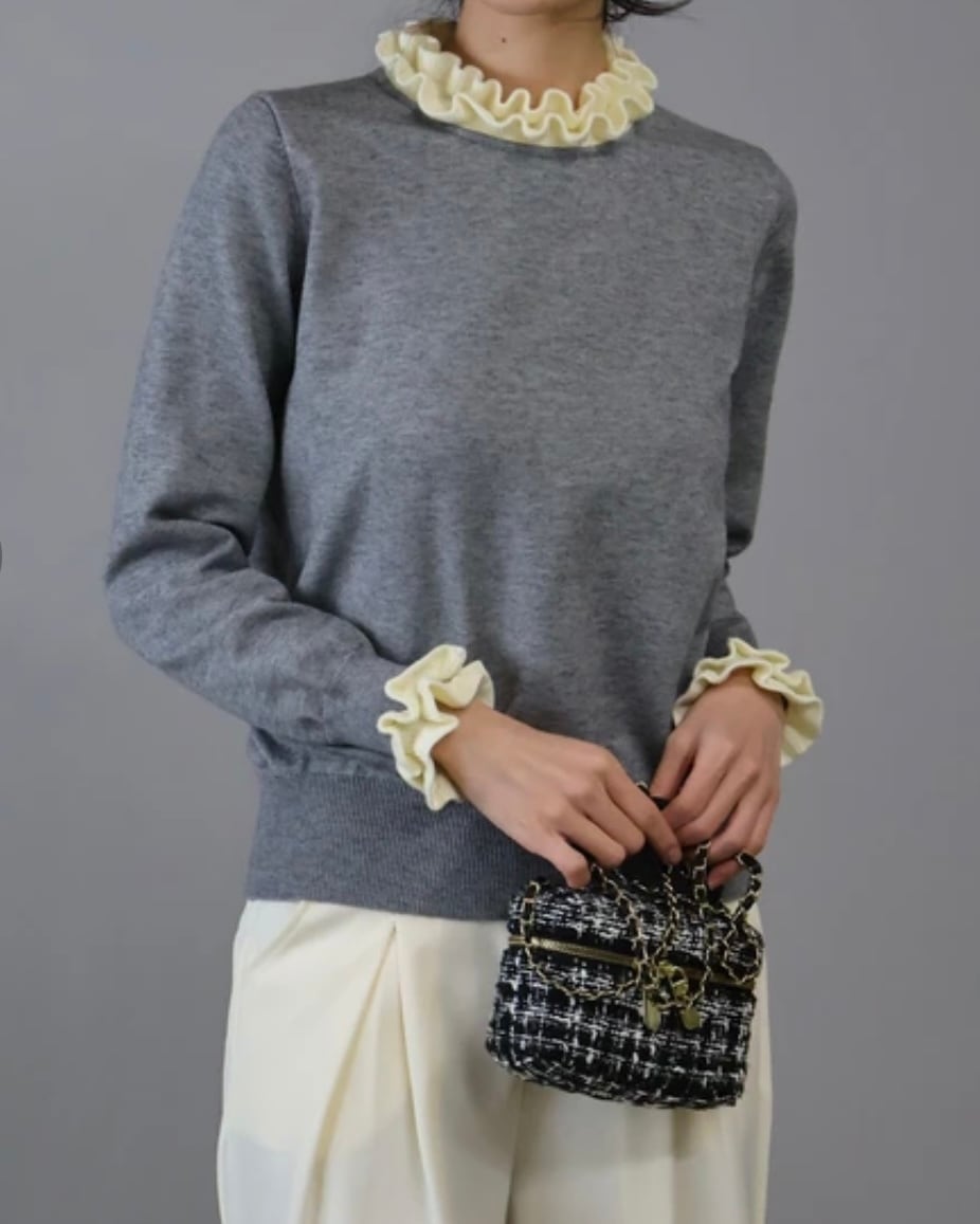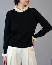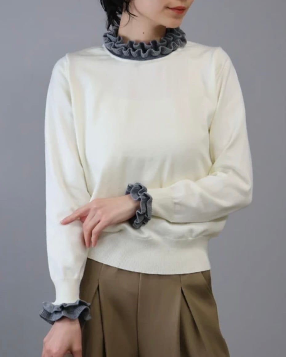 フリルディテールが映える、フェミニンなニットプルオーバー。