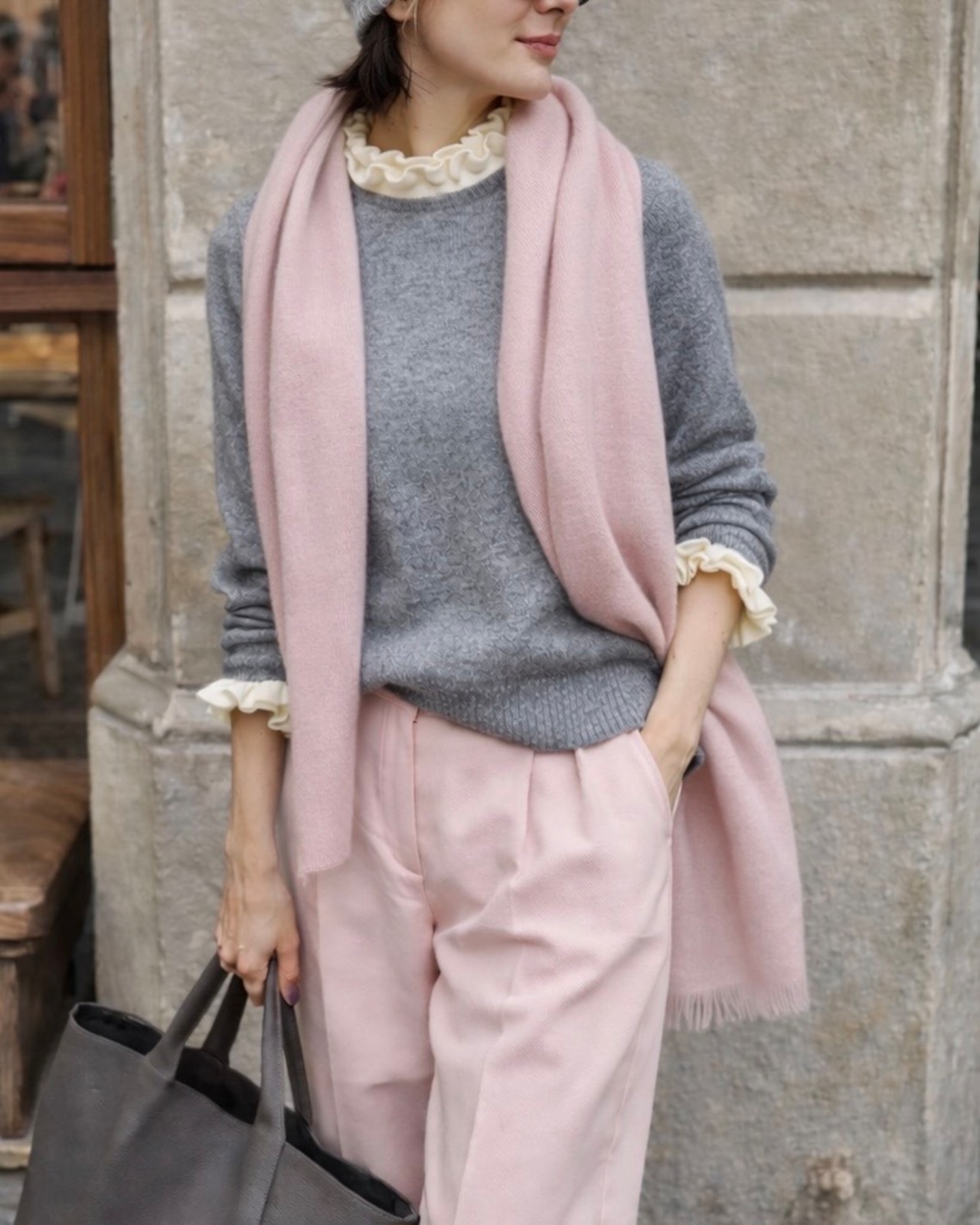 一枚で着るのはもちろん、ジャケットやベストのインナーとしてもアクセントになるデザイン。