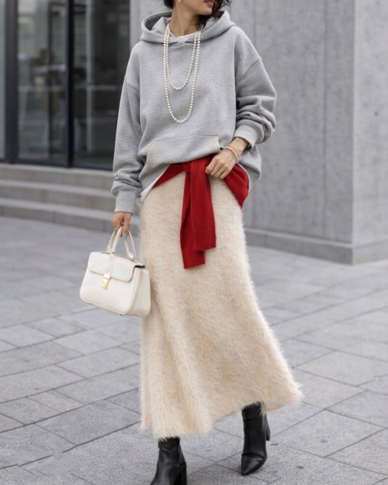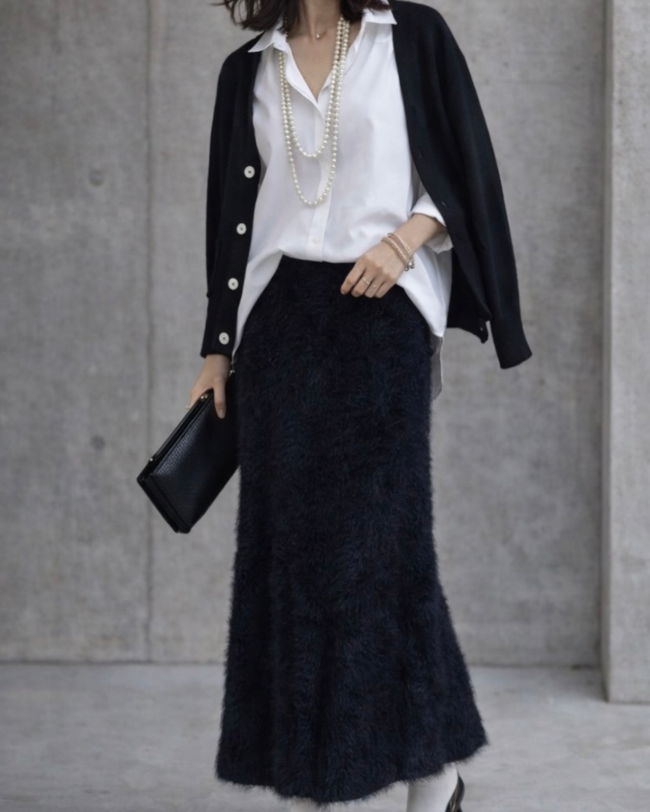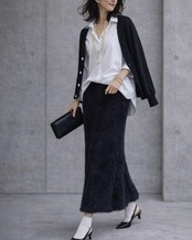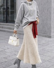 ふんわりとやわらかな質感が魅力的なシャギーニットスカート。
