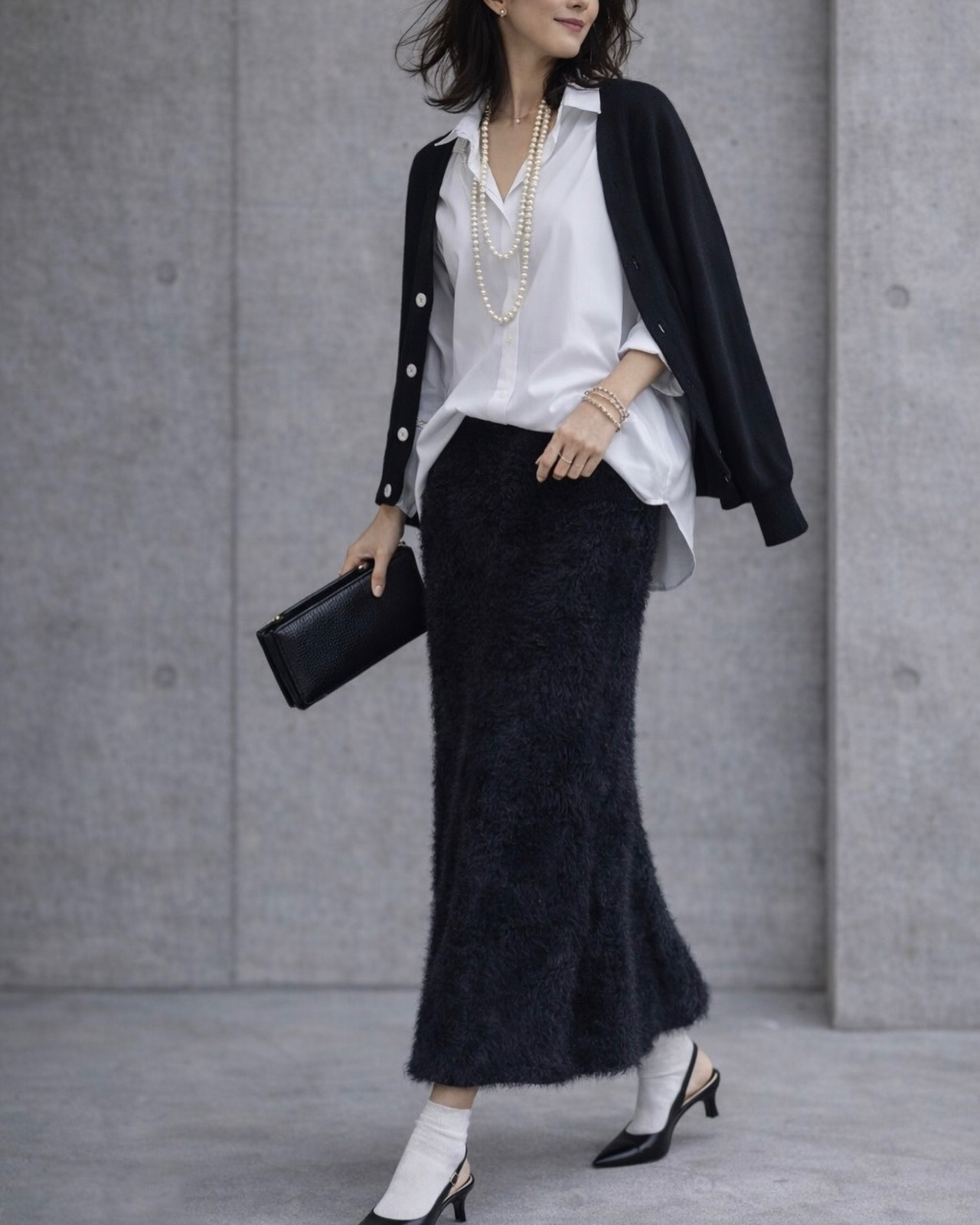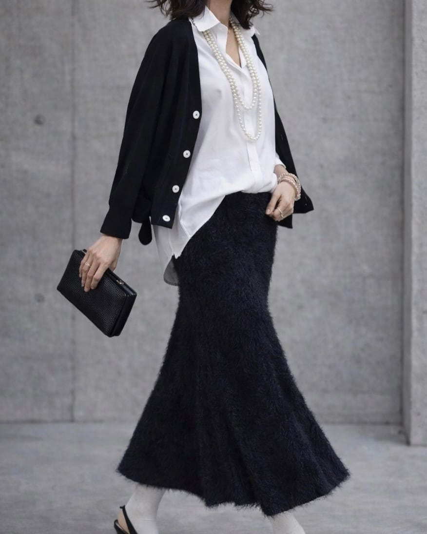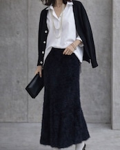 シャギーが生み出すニュアンスち裾に向かって広がるマーメイドラインが上品な印象に。