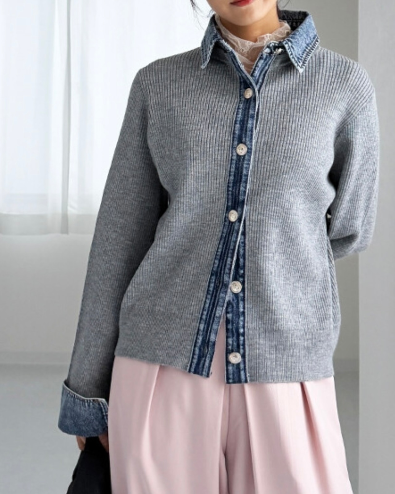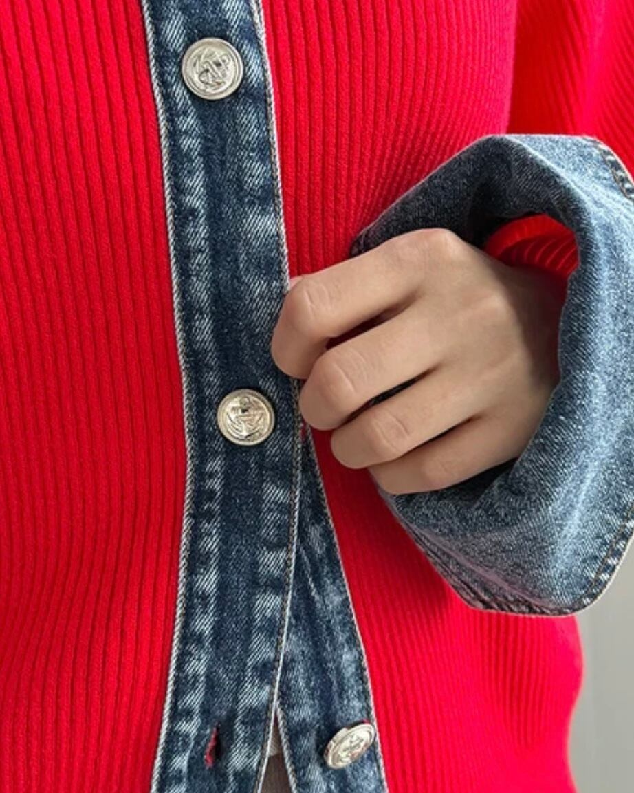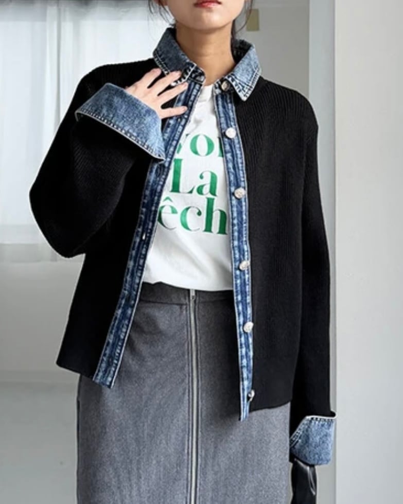 昨年大好評だったデニム生地がドッキングされたカーデが