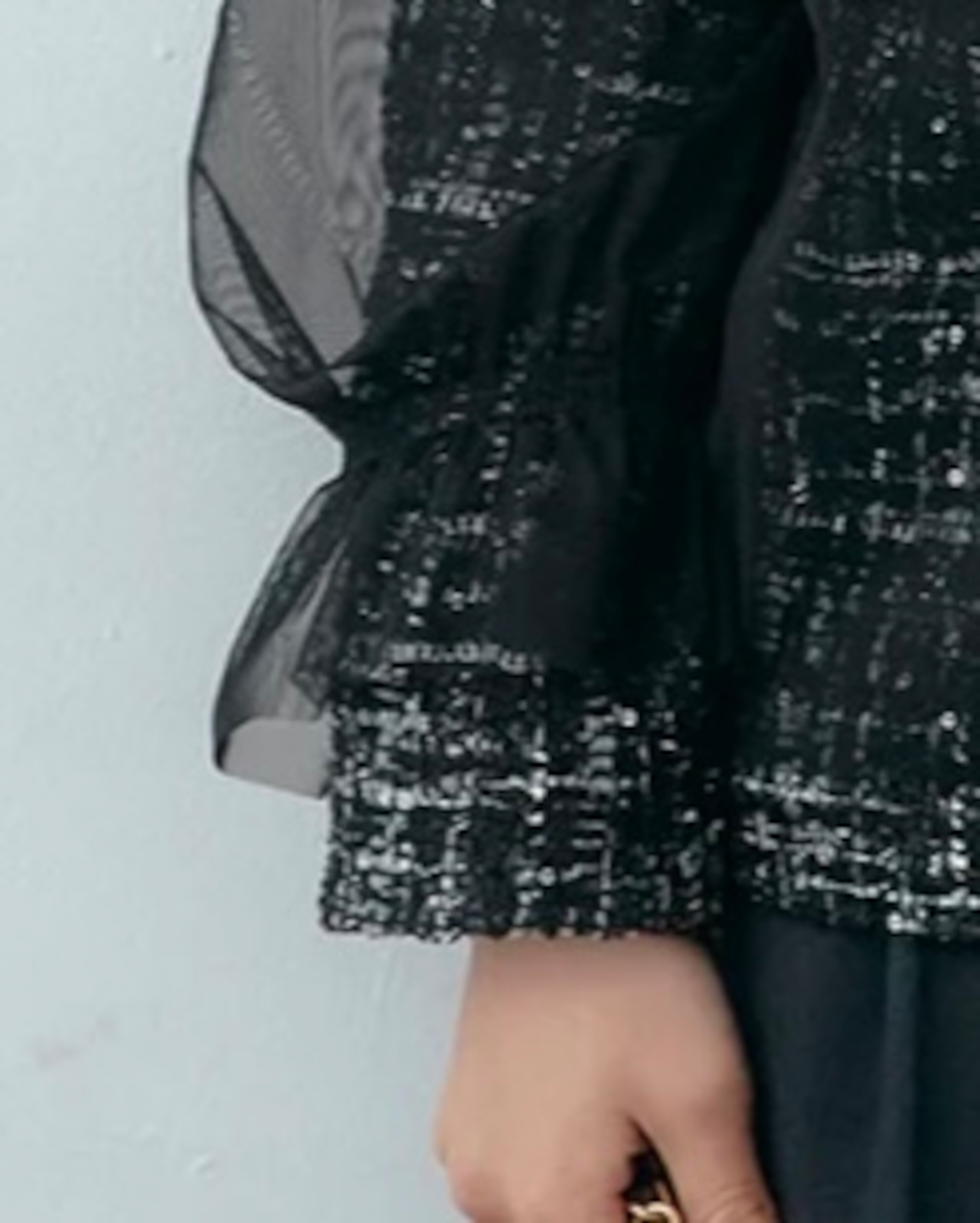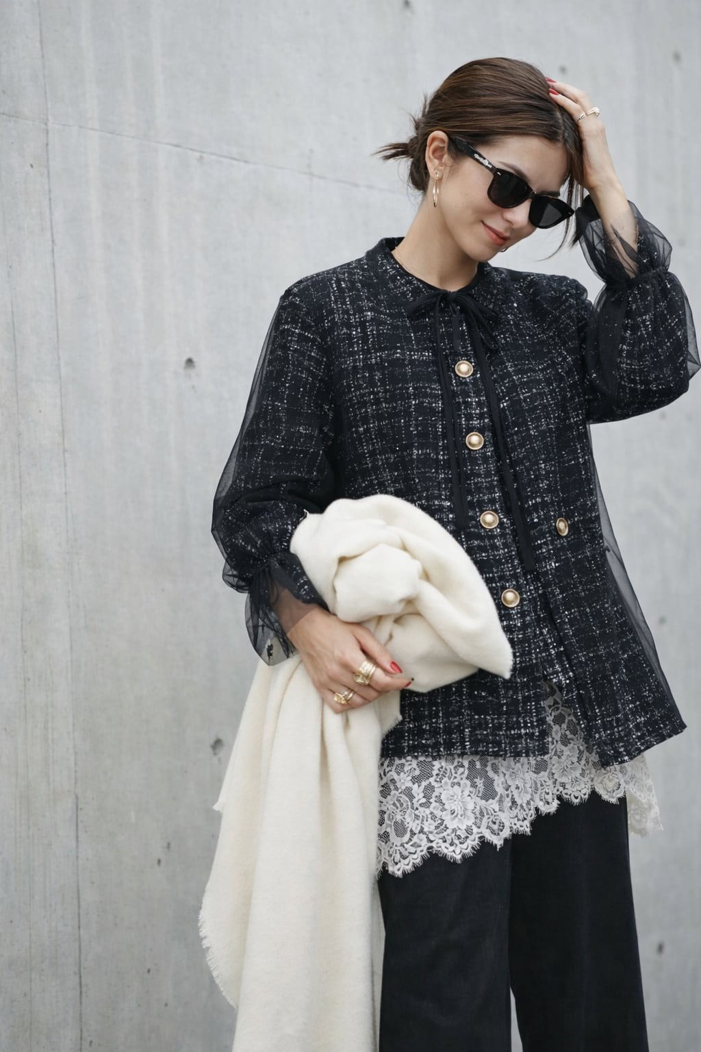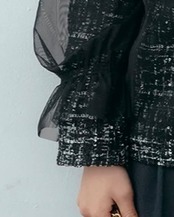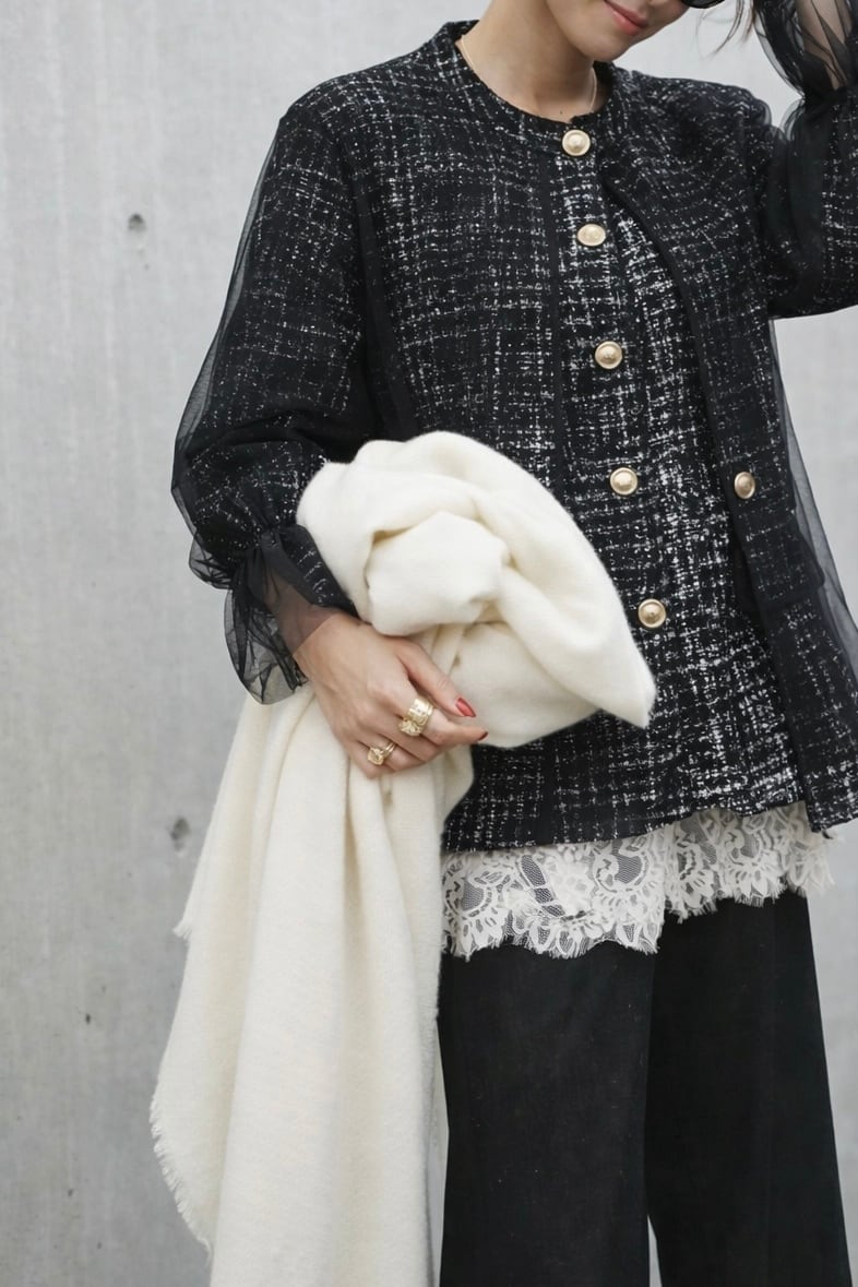 チュールの軽やかさとツイードのクラシックな風合いが調和された逸品!インナーのみ裏地付きです!!