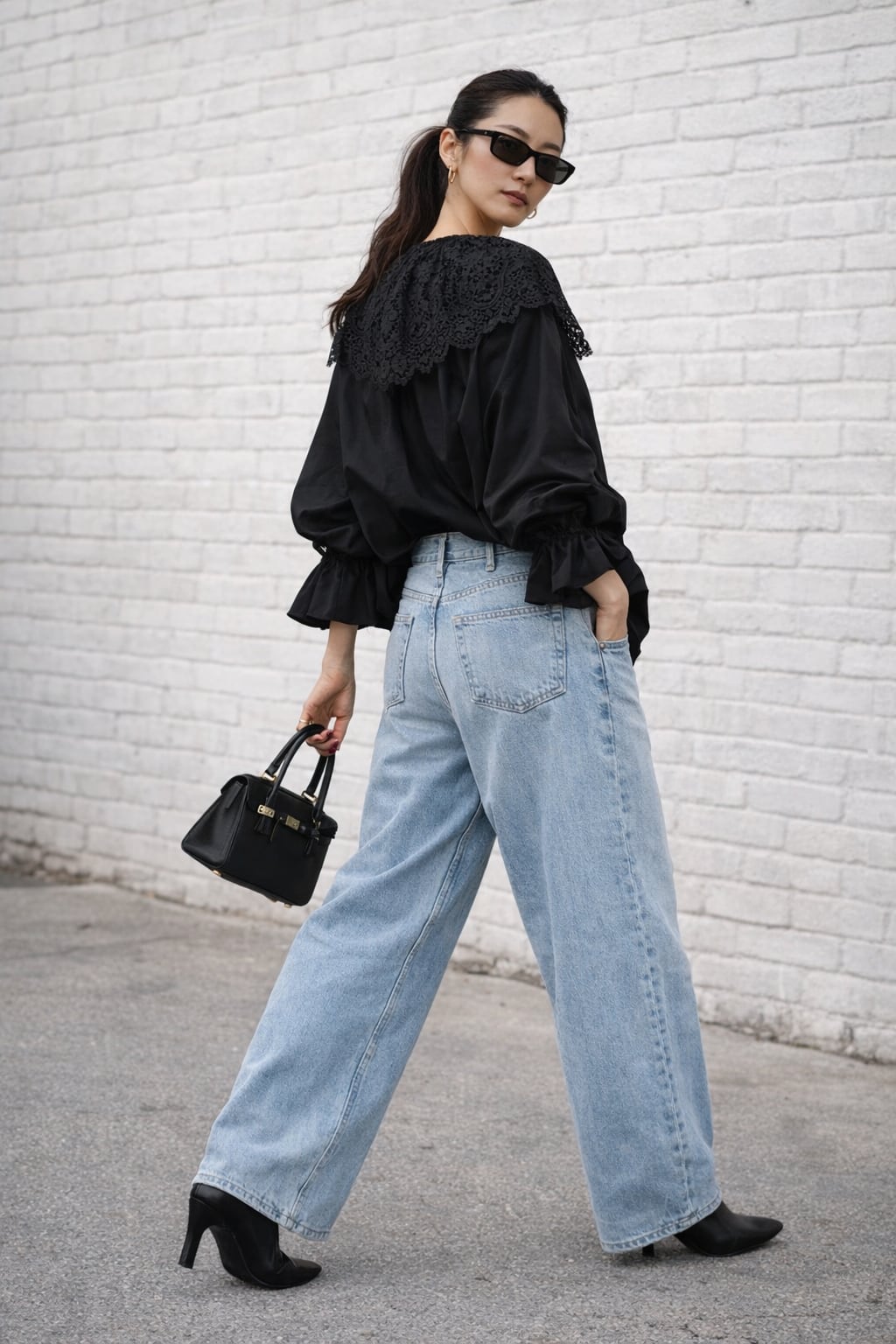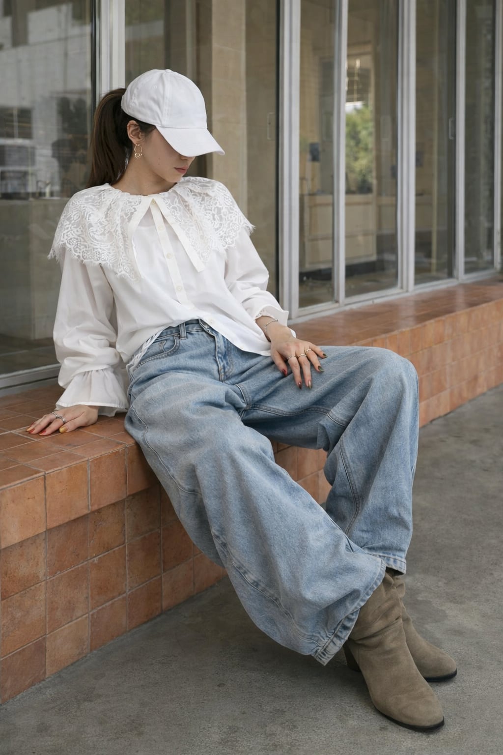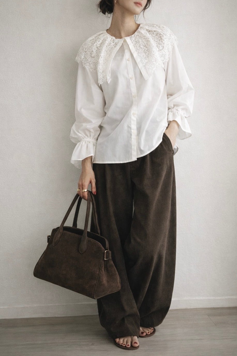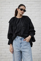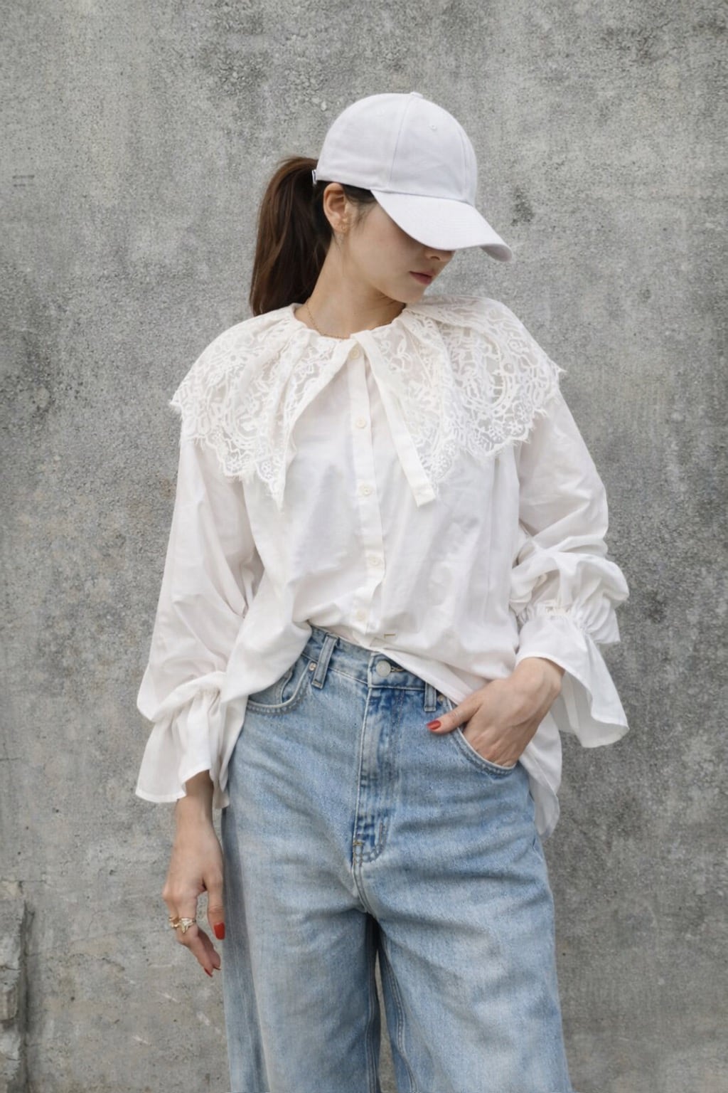 T/Cブロードにレース衿、キャンディスリーブもオシャレなブラウス