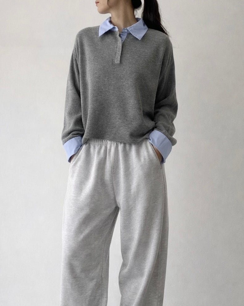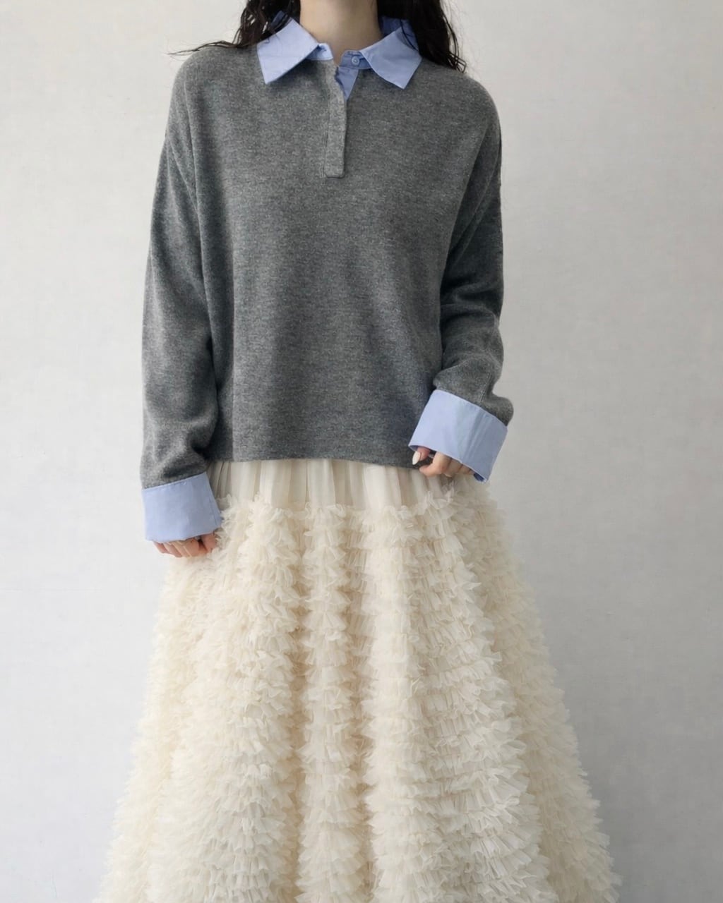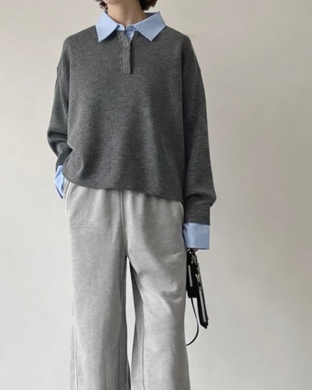 襟部分と袖のみレイヤード風のデザインですっきりと着用いただけるアイテム