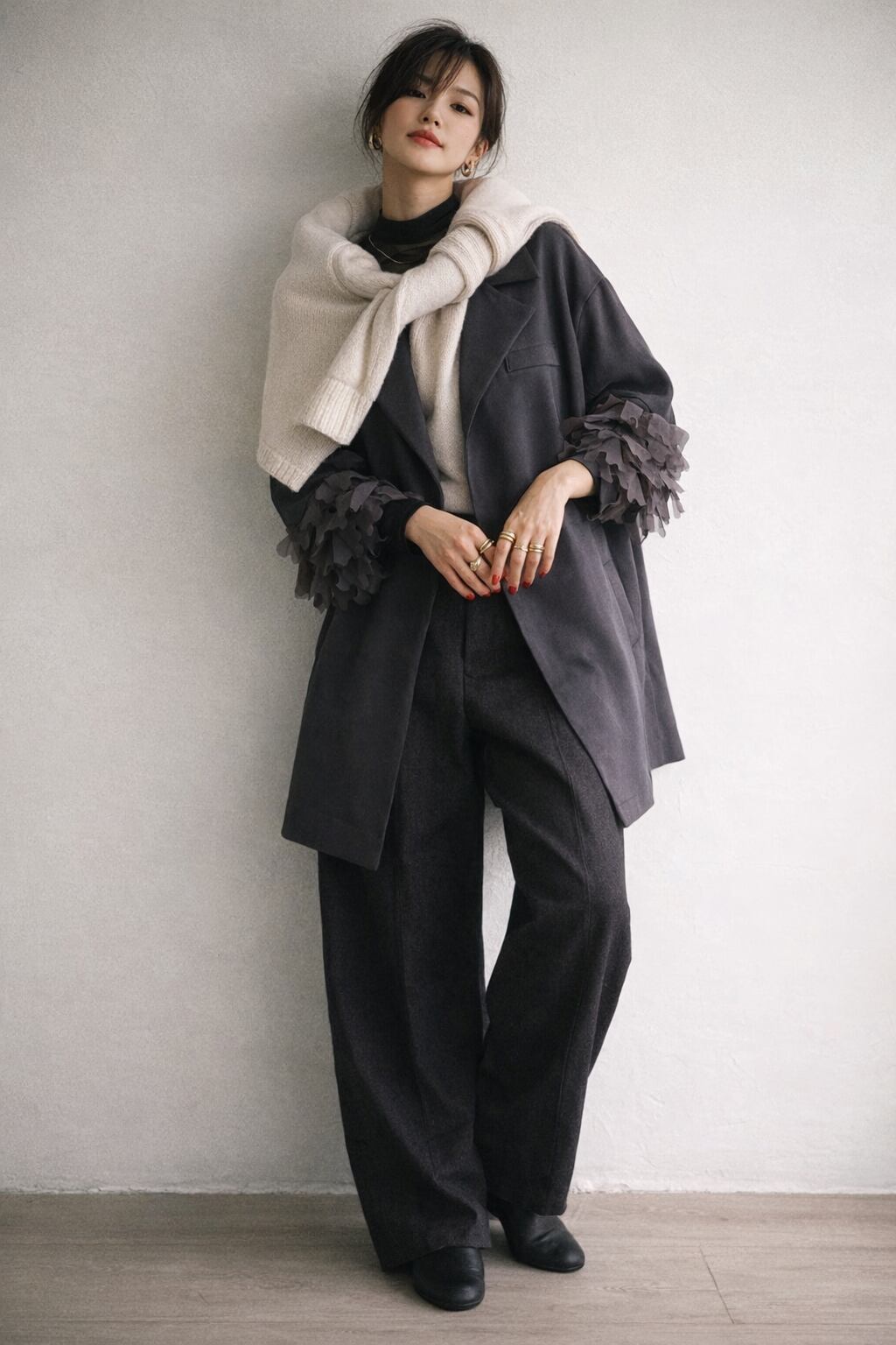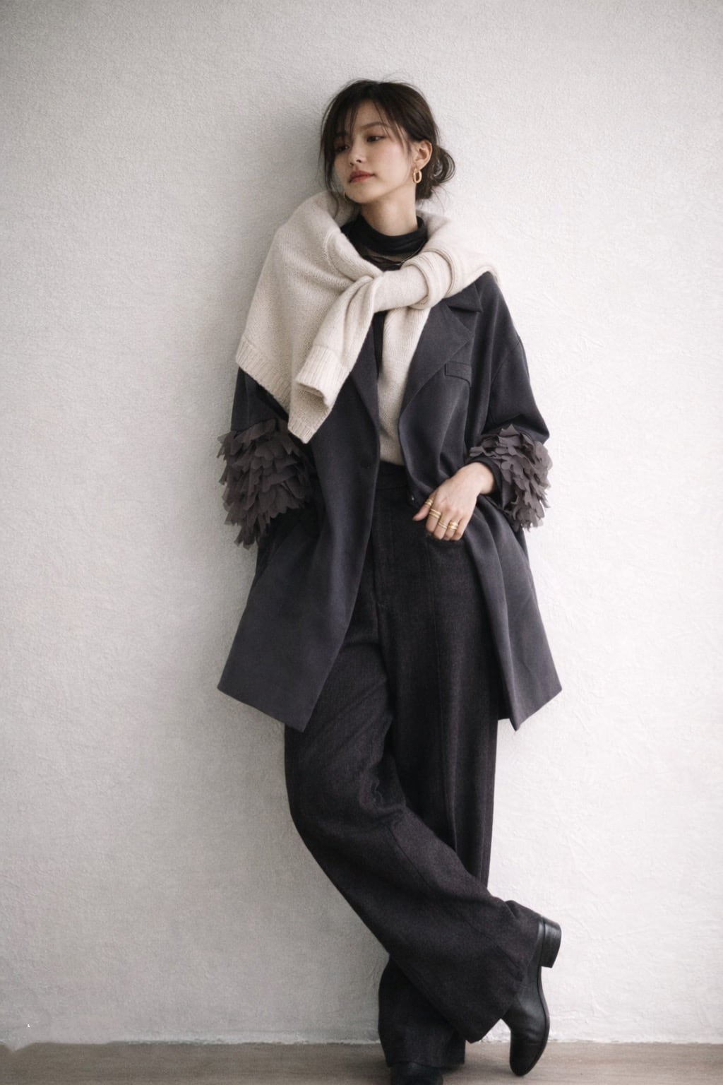 羽織るだけで大人クラシカルな印象で、カジュアルからオケージョンまで幅広く活躍してくれる万能アイテムです。