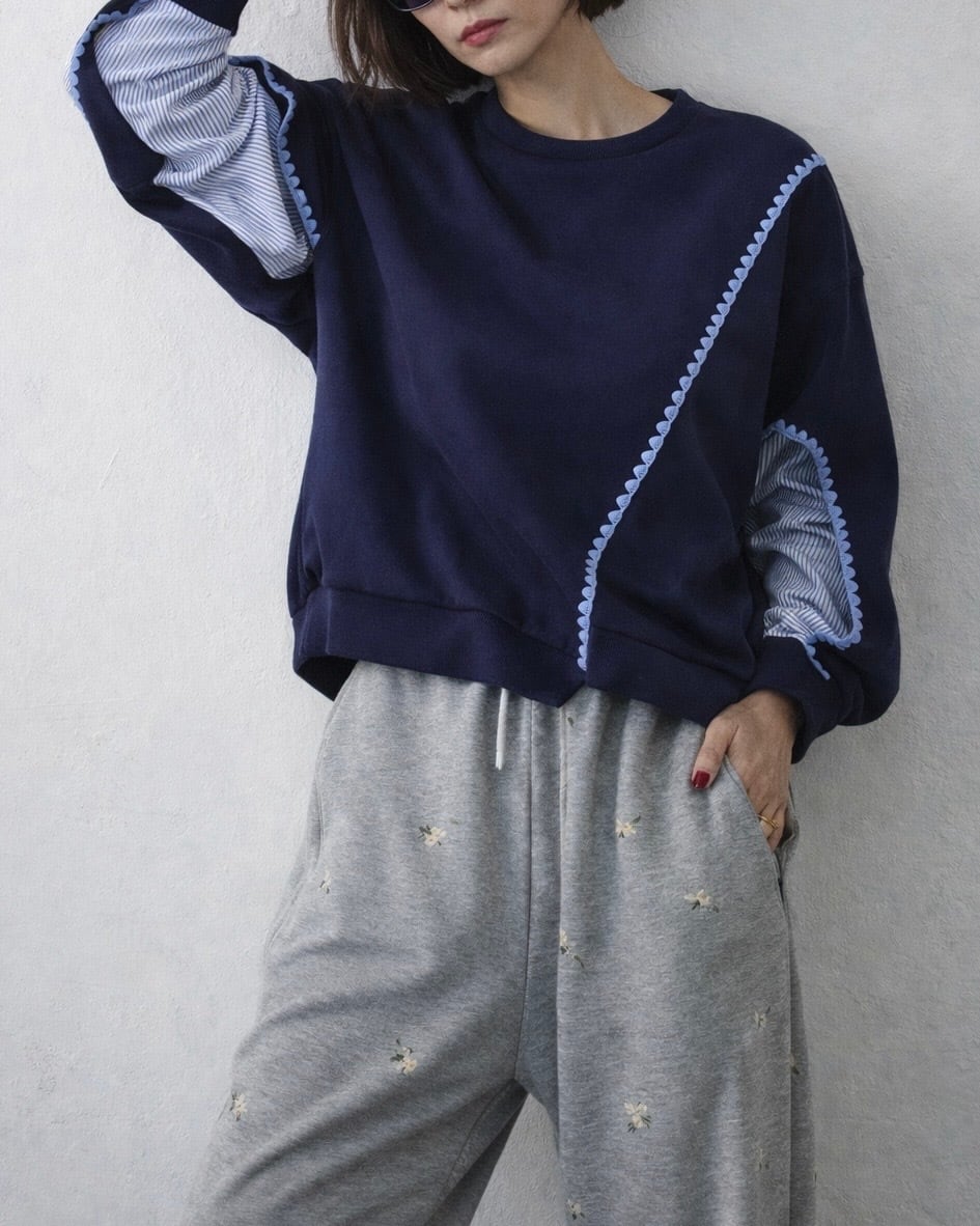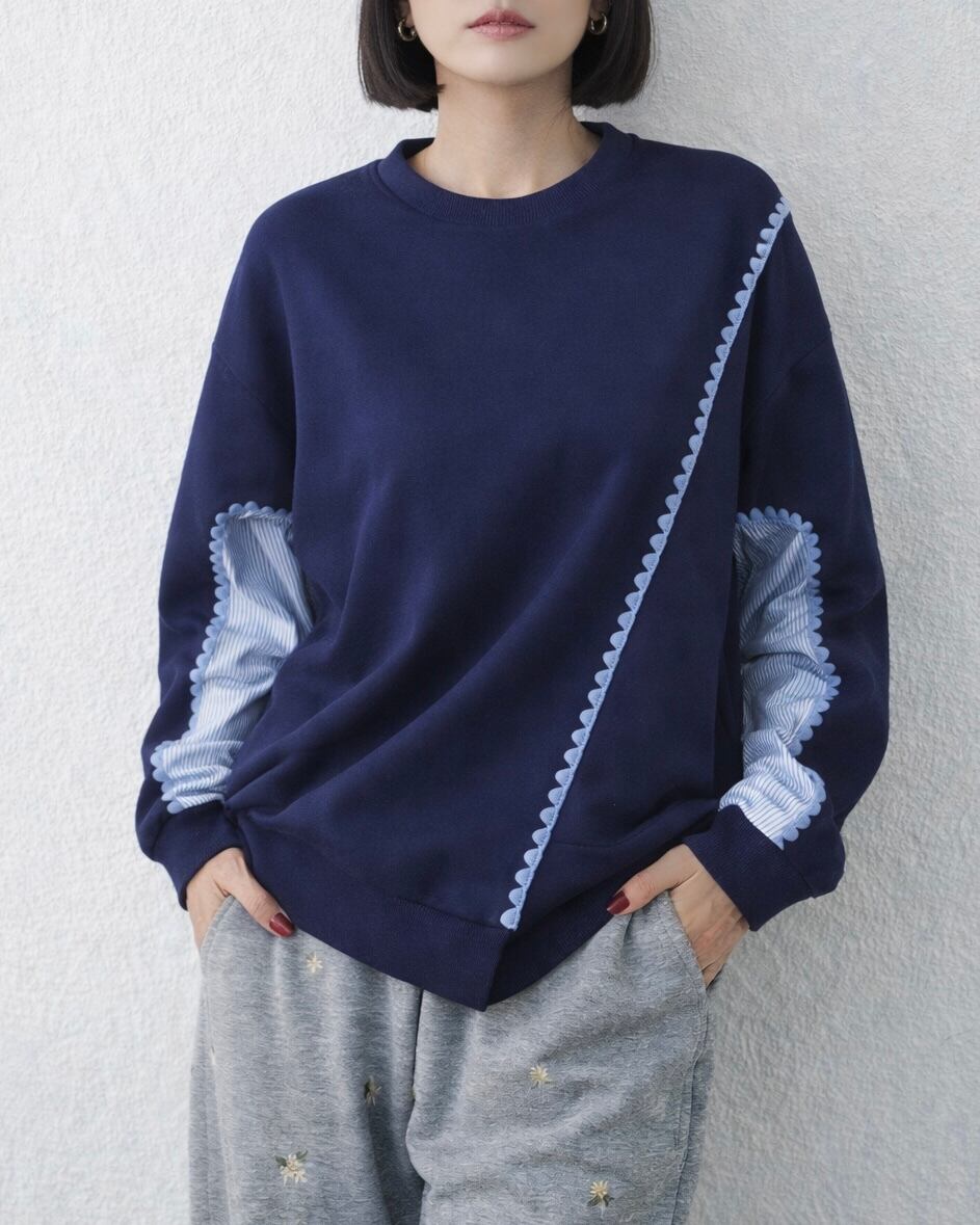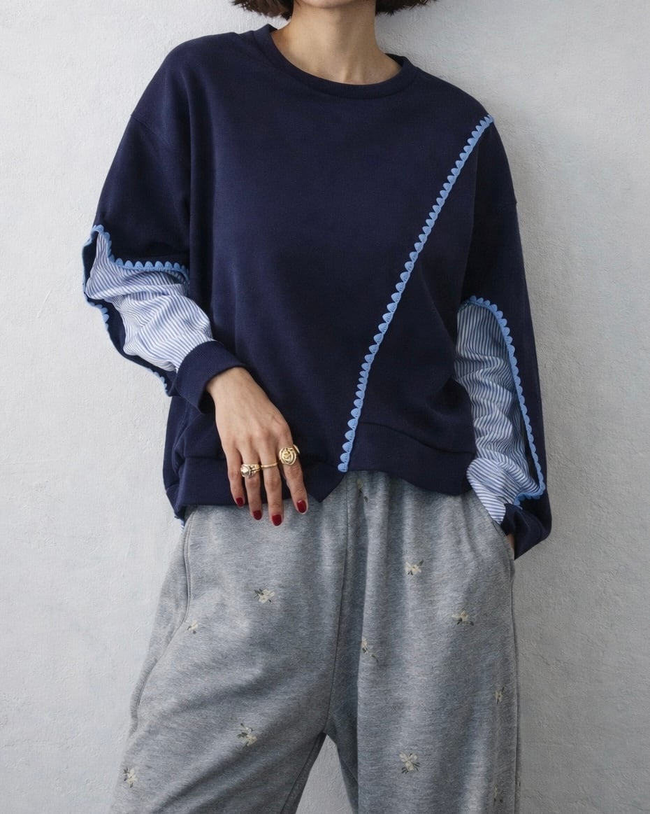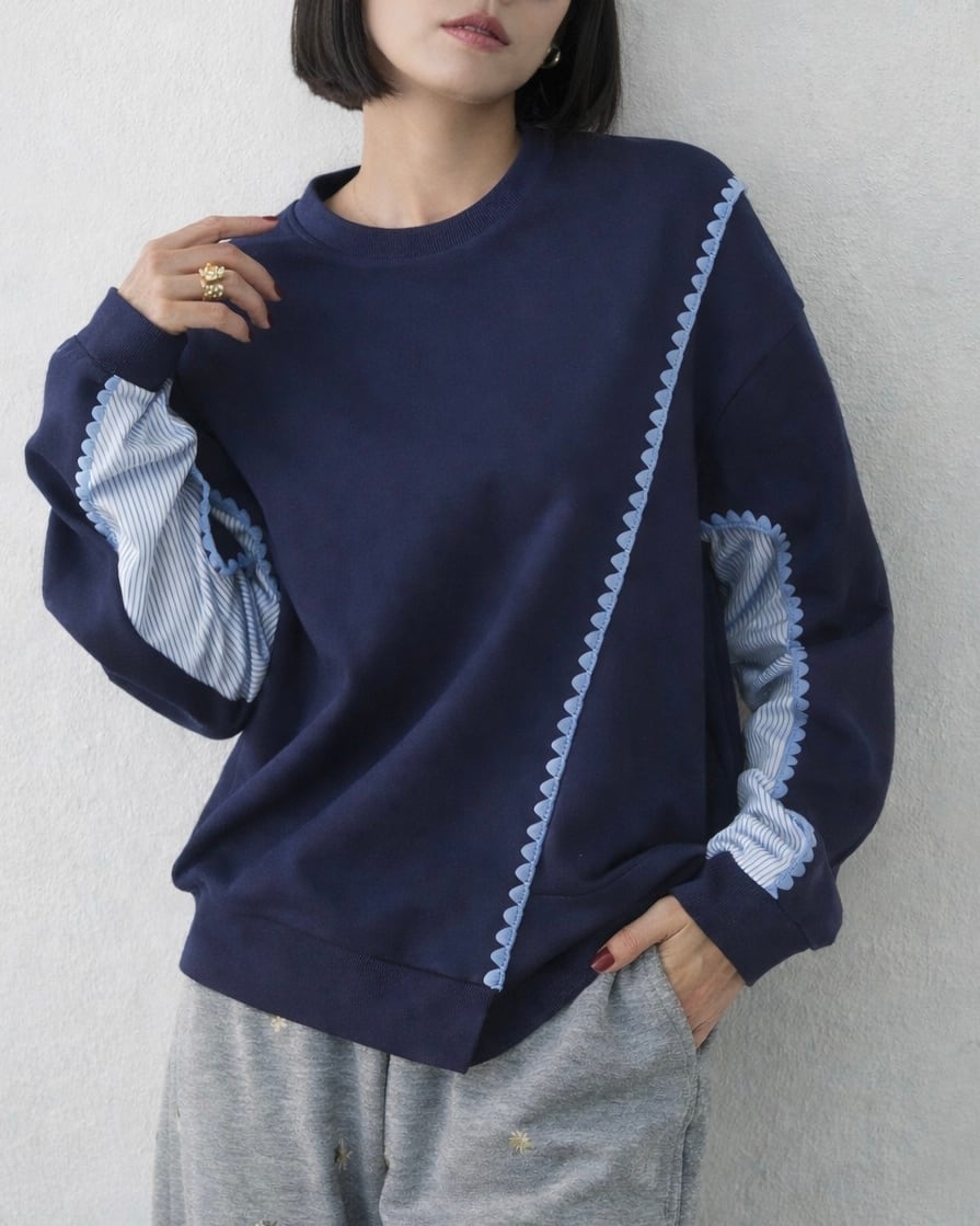 異素材ドッキングデザインがオシャレなトップスです。
