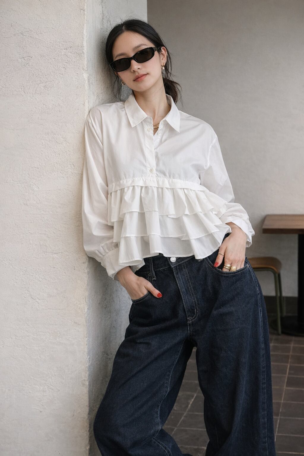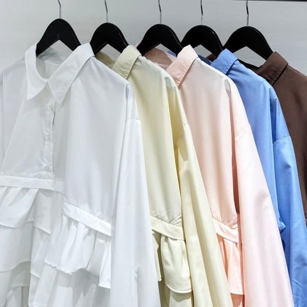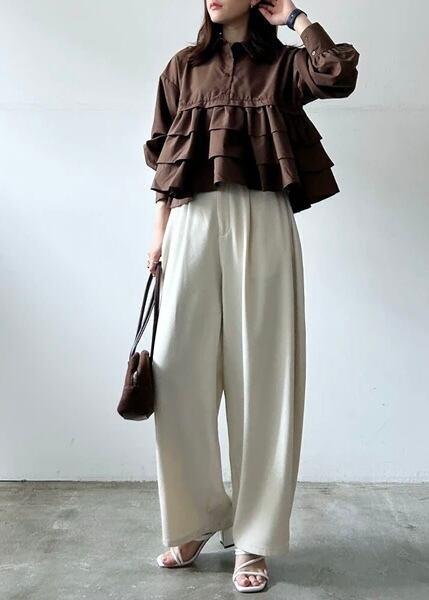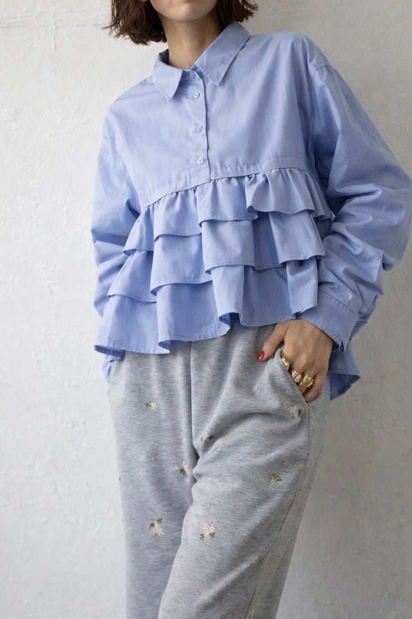 ティアードデザインが目を惹く、ブロード素材のフリルシャツ。