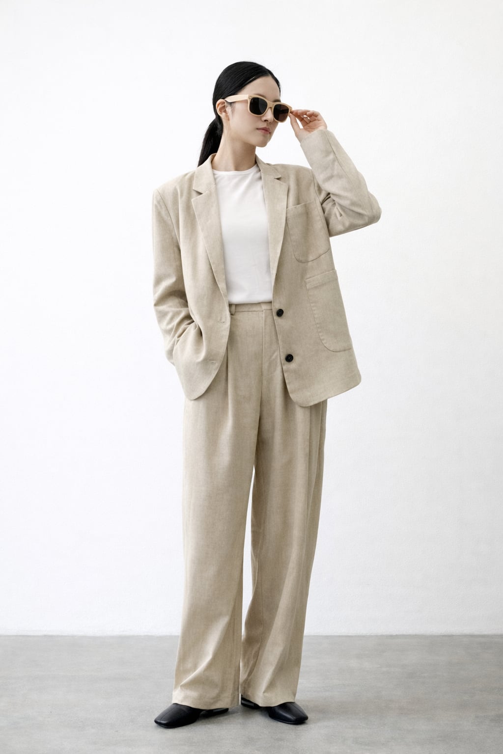ナチュラルかつマニッシュな印象のオーバーサイズテーラードジャケット。