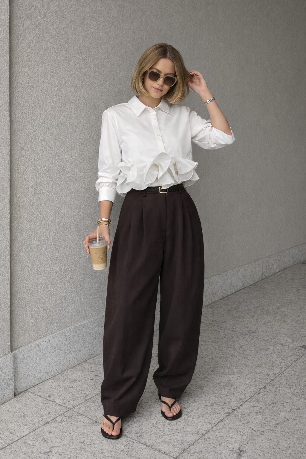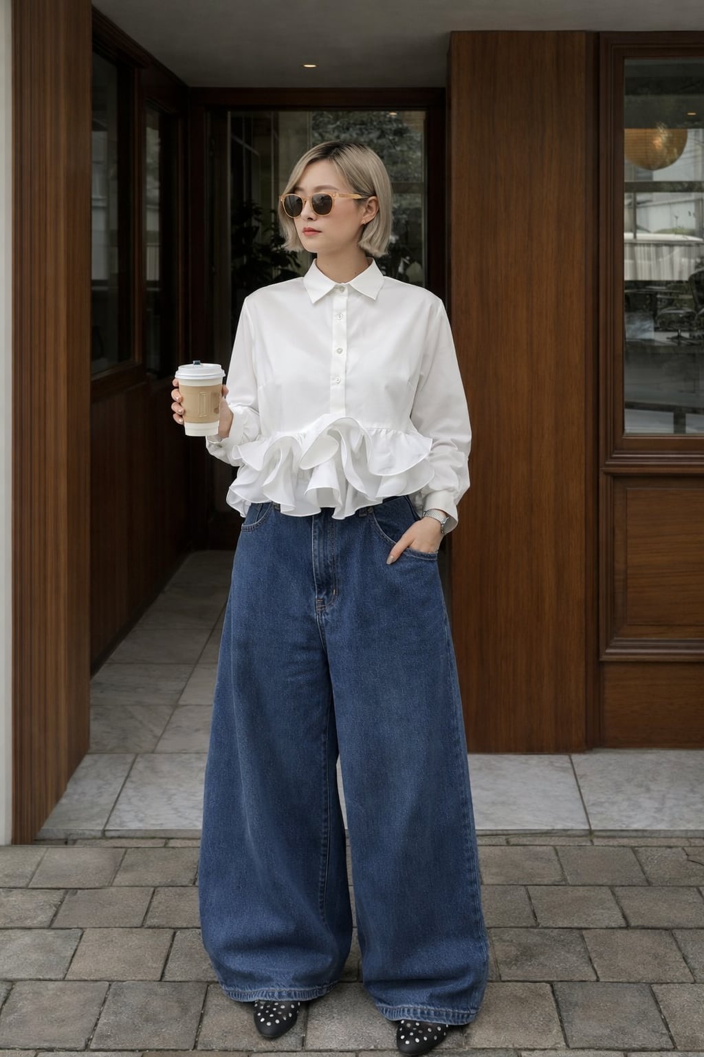 ショート丈感が可愛い裾フリルデザインブラウスです。