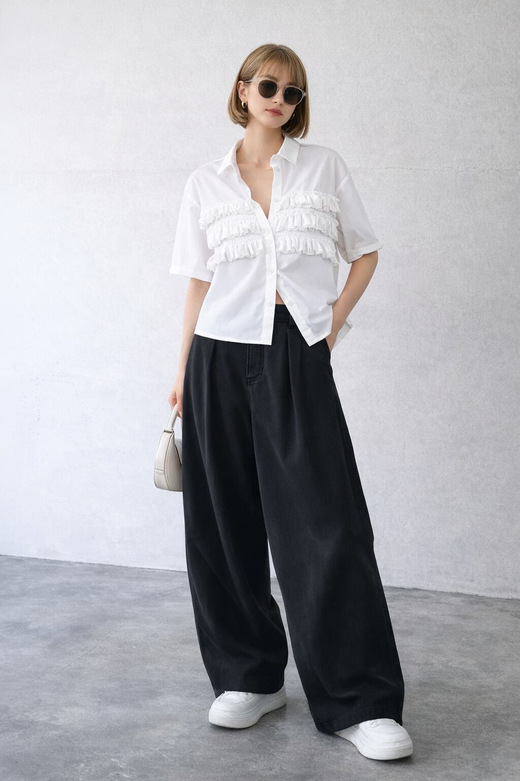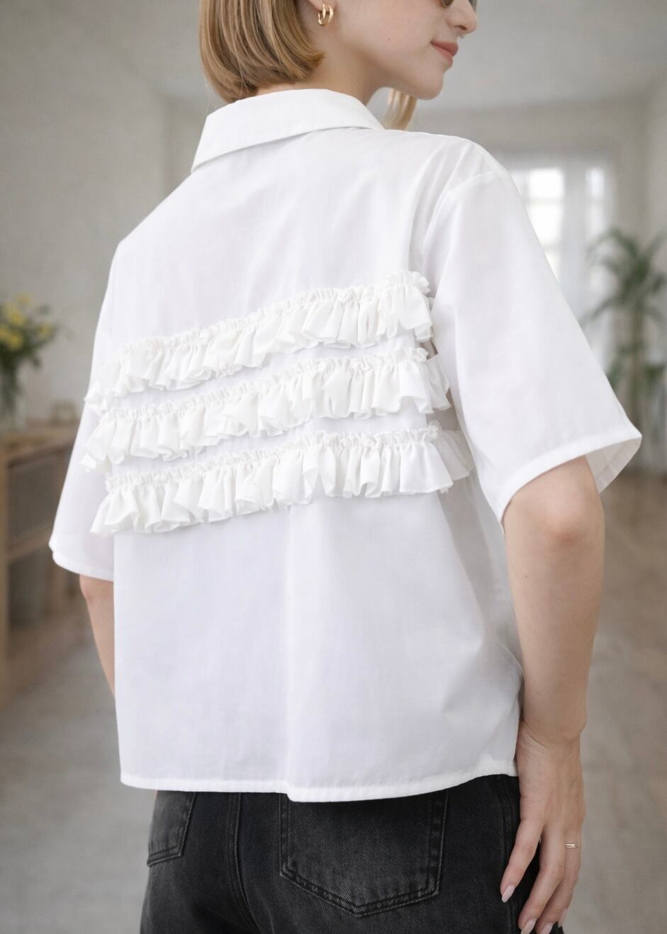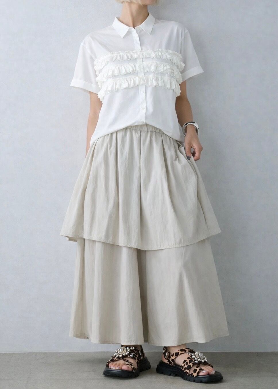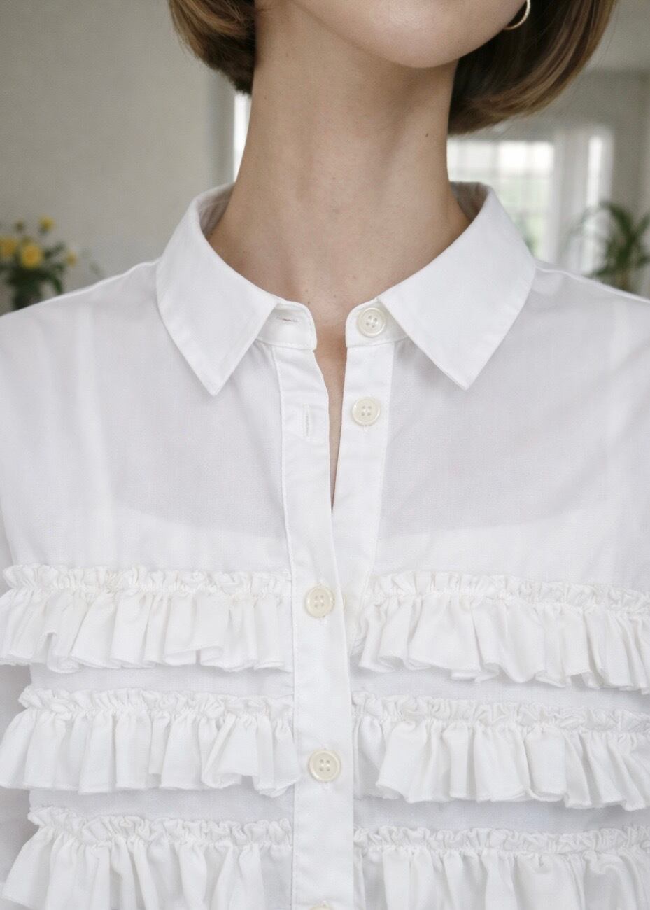 ブロードが軽やかな雰囲気で、フリルも可愛く、今季らしいこなれ感を演出!