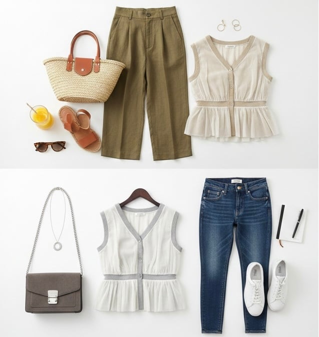 雰囲気のあるポリウーリーのベストが大人カジュアル女子に突き刺さること間違いなしのおススメアイテム