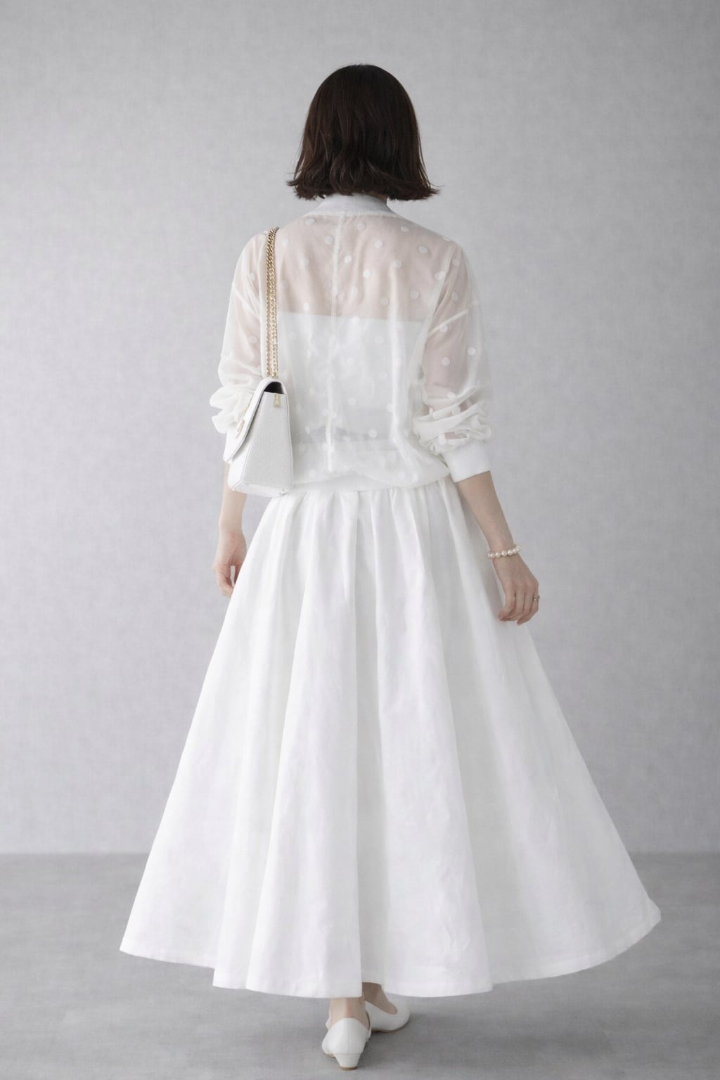 大人の装いにちょうどいい甘さを添えてくれる、エレガンスカジュアルな一着です