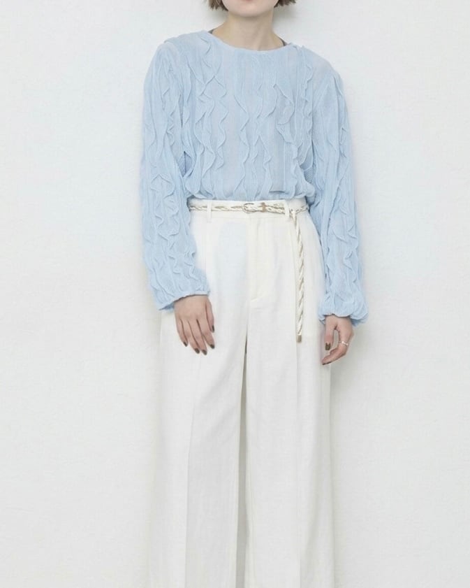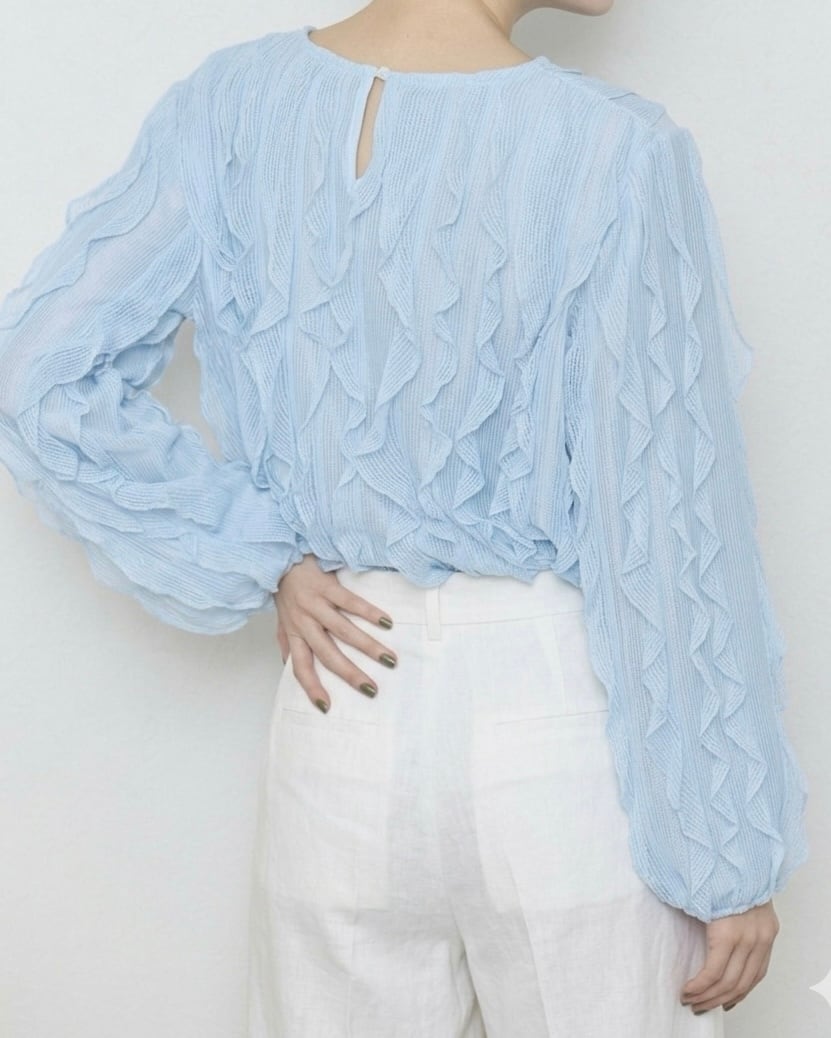 全体がフリルで覆われた存在感抜群のブラウスです。