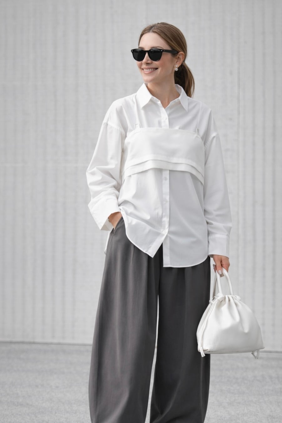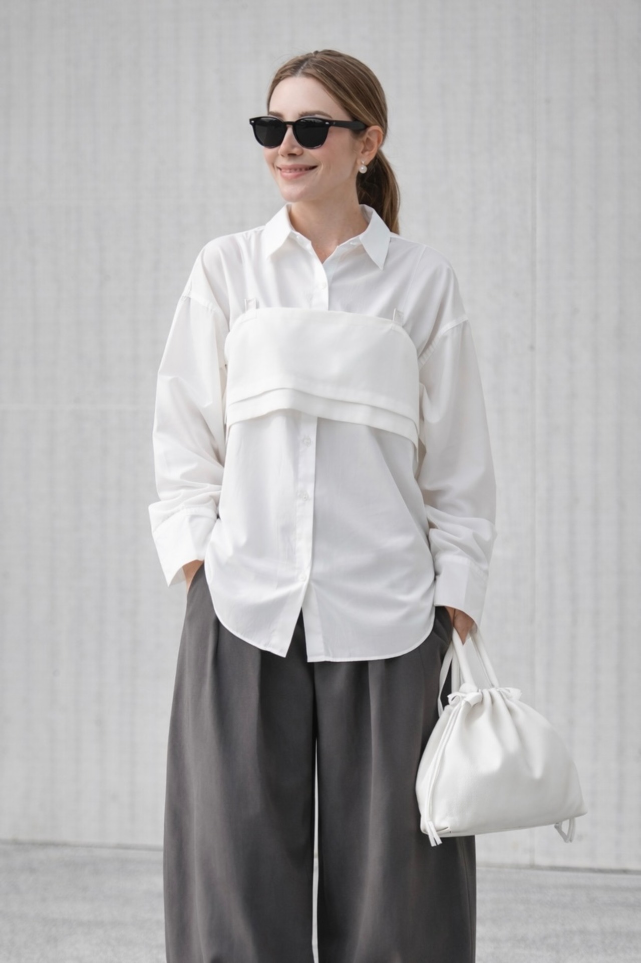 ビスチェ付きになっているので羽織ではもちろんそれぞれのスタイリングをお楽しみいただけます
