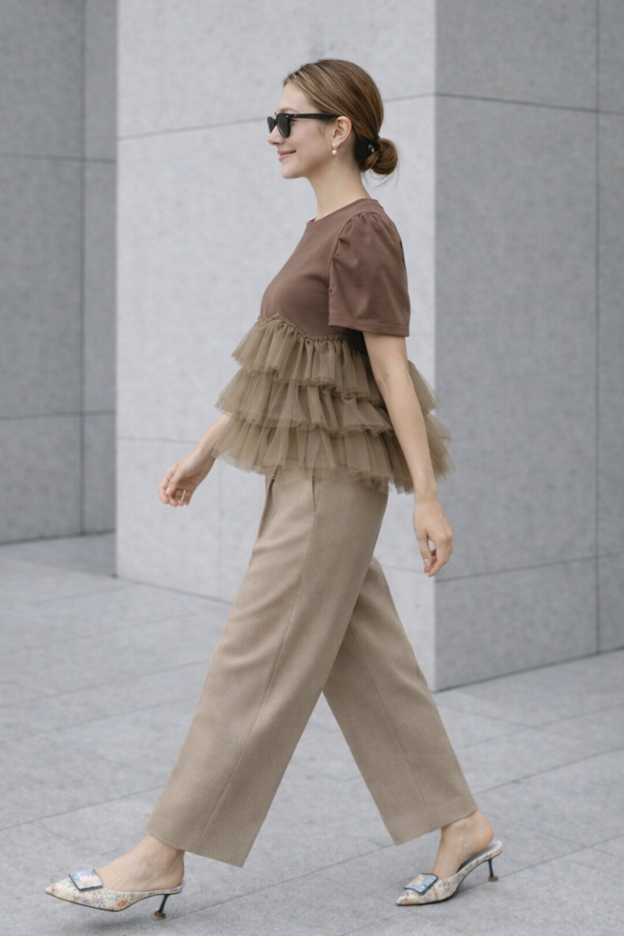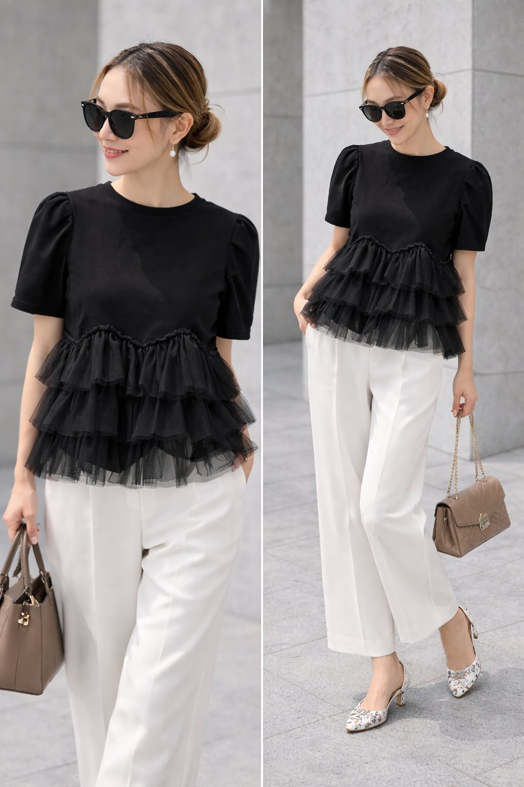 ふんわり重なるチュールが華やか。大人可愛い雰囲気を叶える主役トップス。