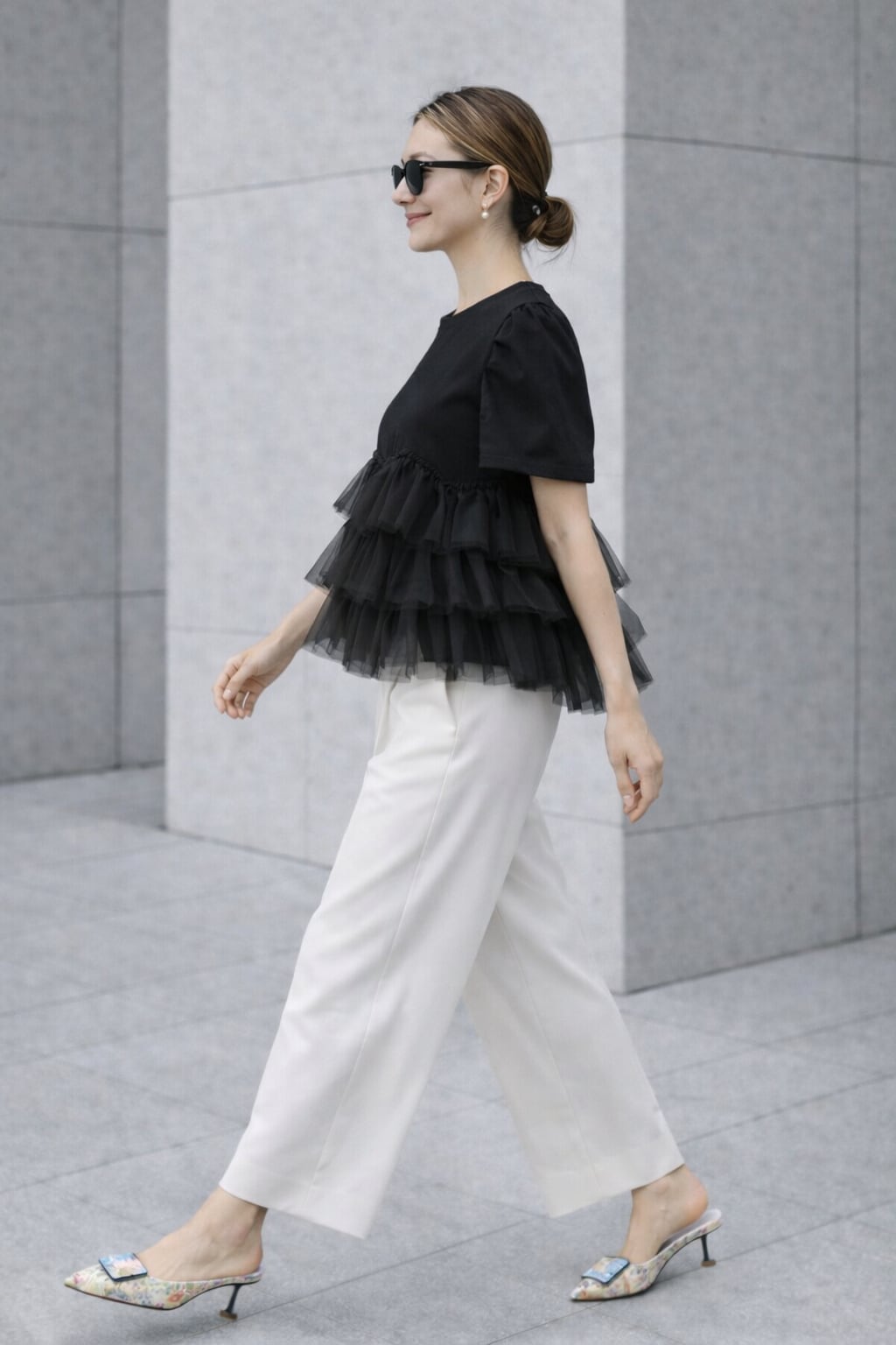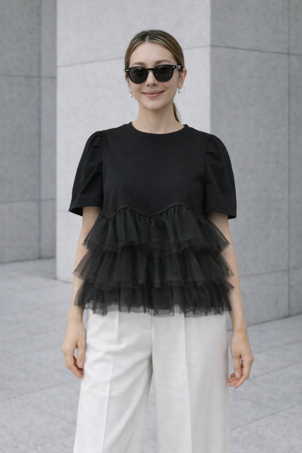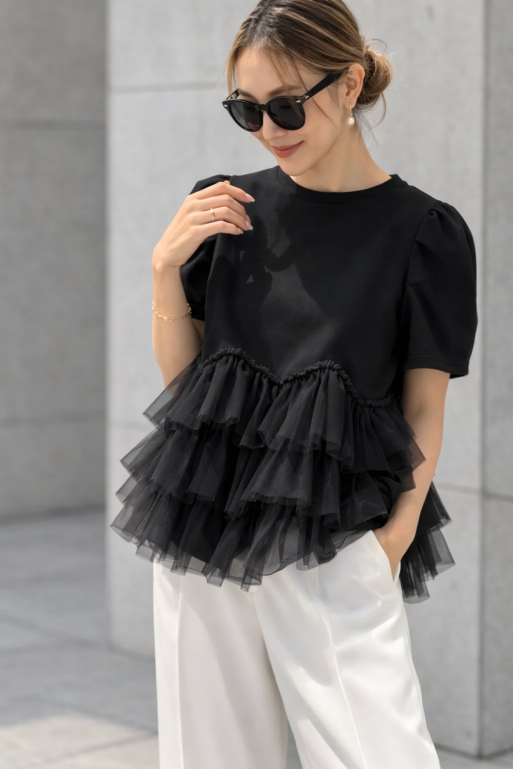立体チュールが華やかな大人可愛いトップス。着るだけでコーデが決まる主役の一枚。