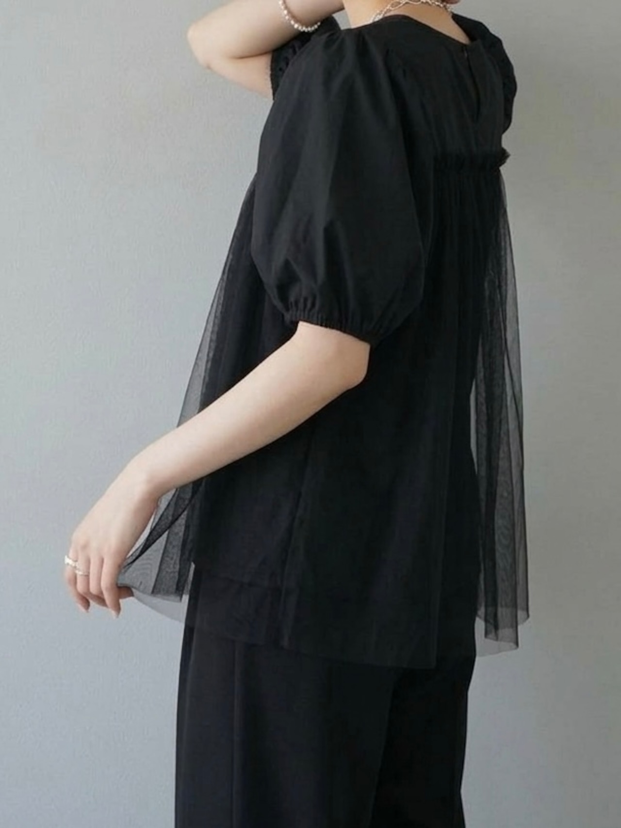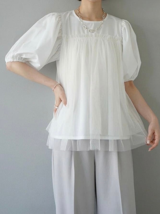 大きく膨らんだバルーン袖のシルエットがガーリーなTシャツ