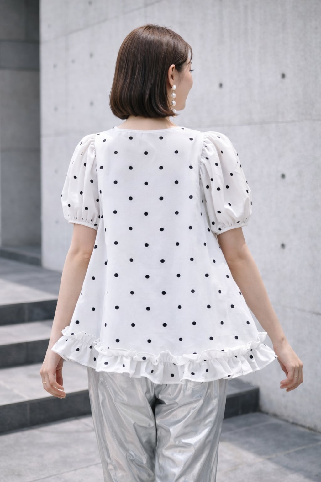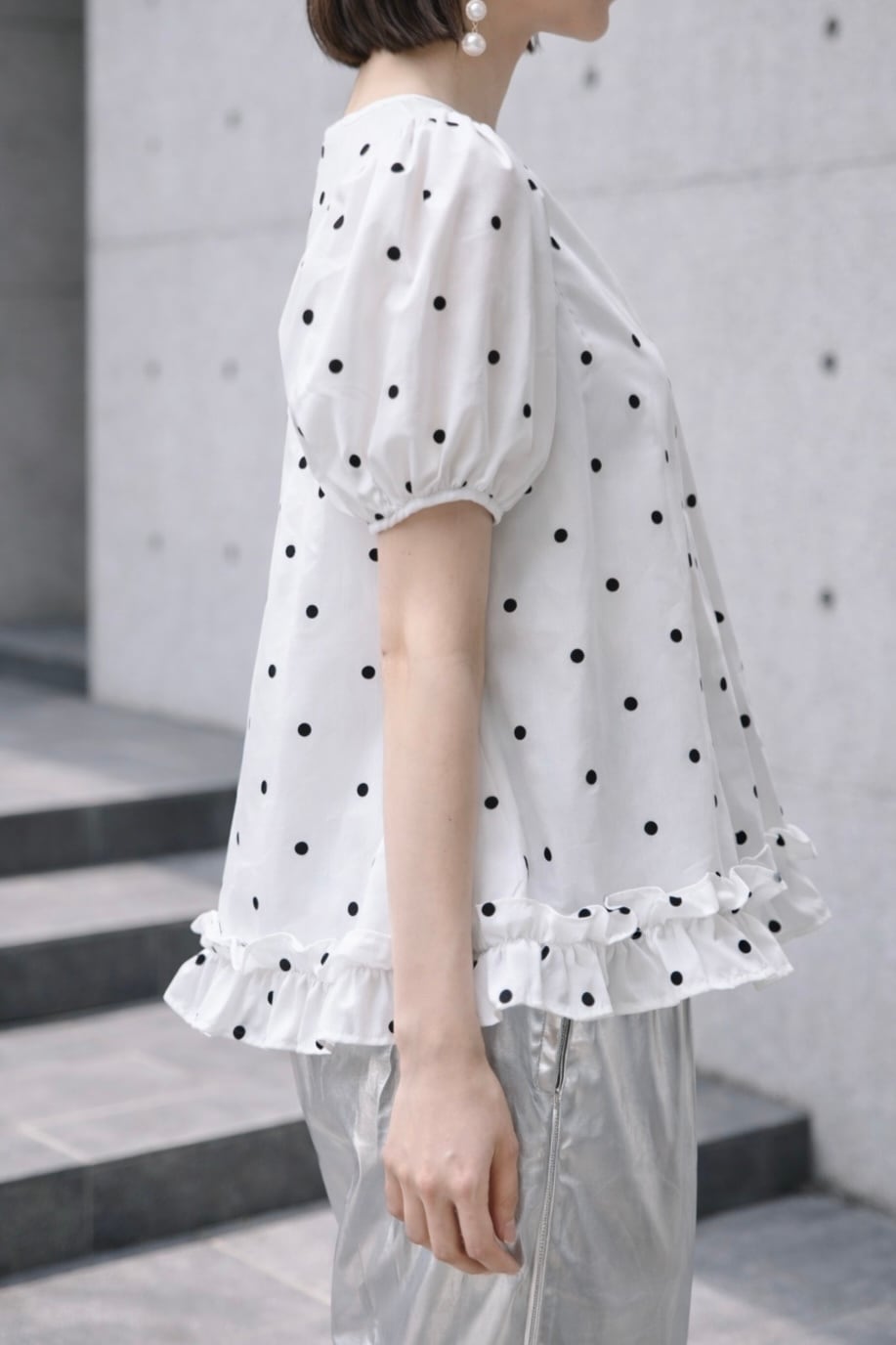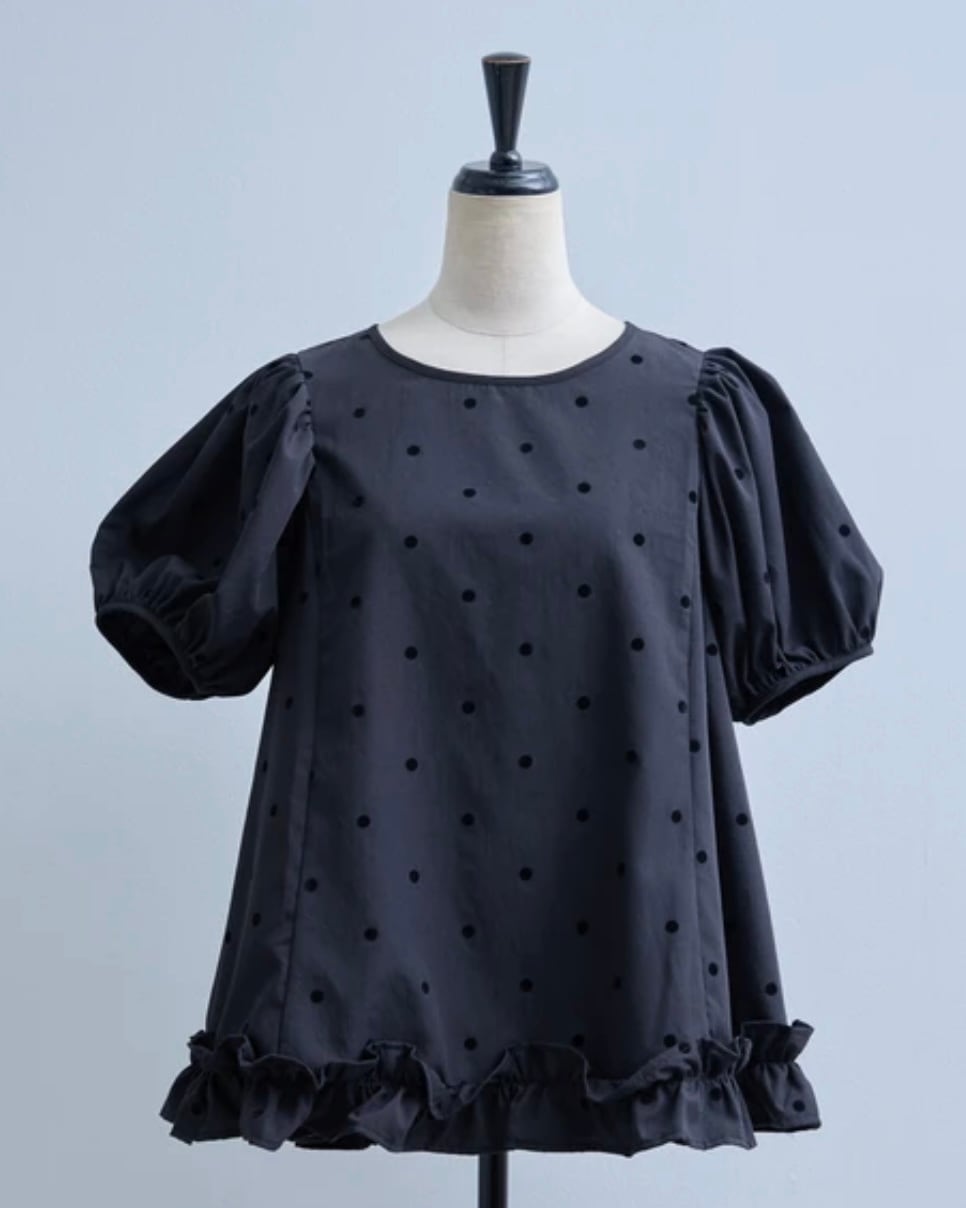 たっぷりギャザーのふんわりしたお袖と、裾のフリルが可愛らしく仕上がっております。