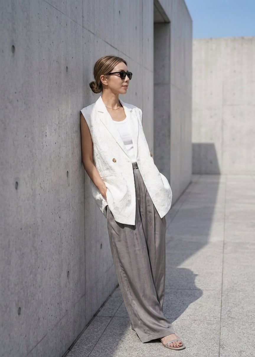 表情感のある素材でシンプルになりすぎず、大人っぽく洗練された印象に。