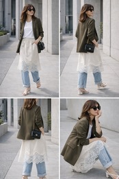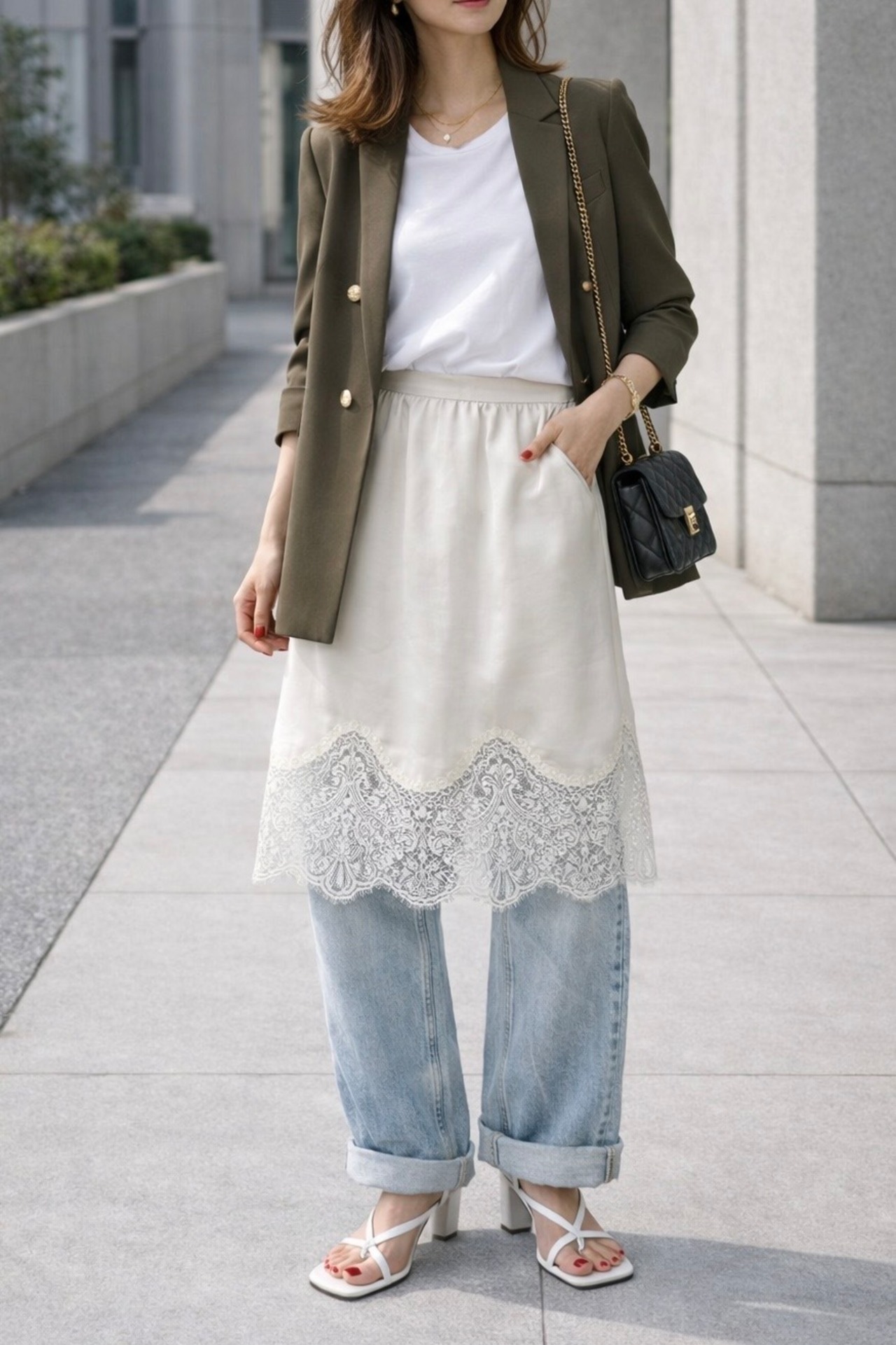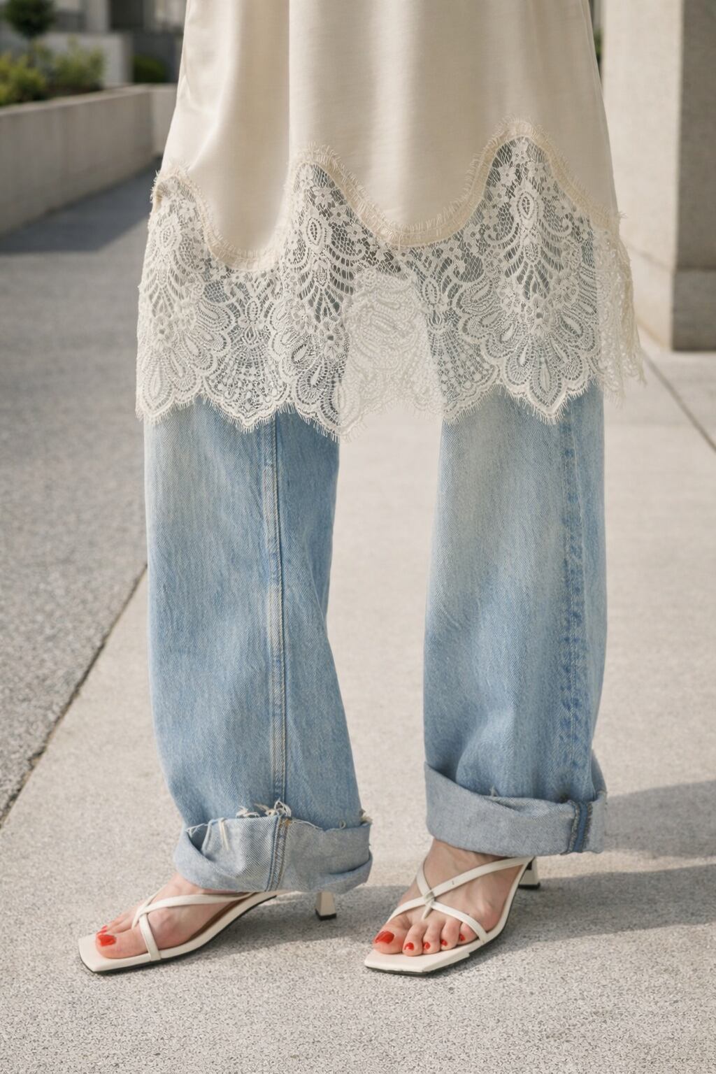 レースが演出する大人可愛いリラックスカジュアルスタイルにピッタリ