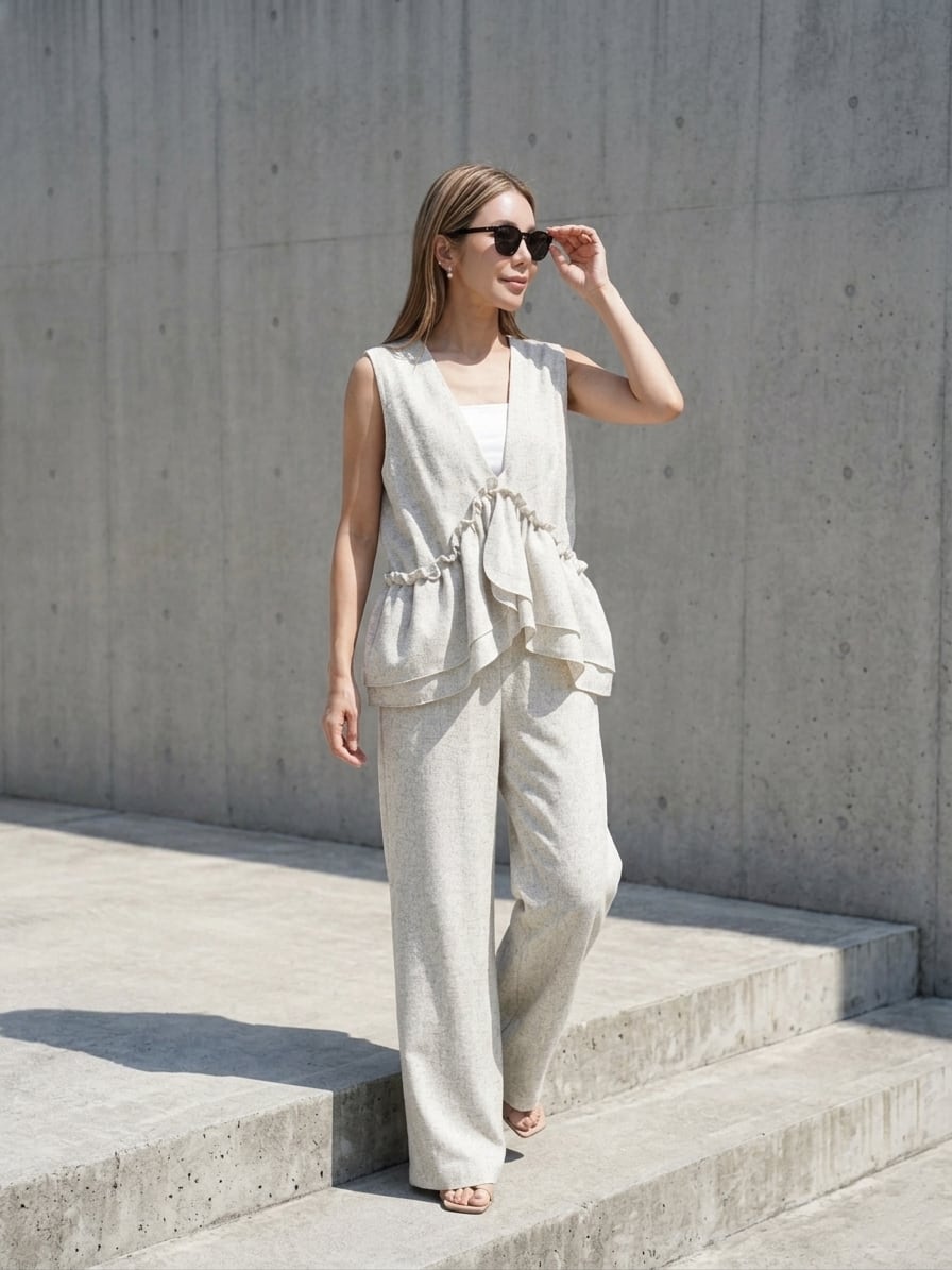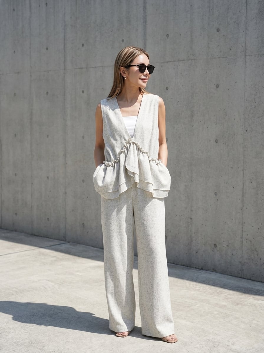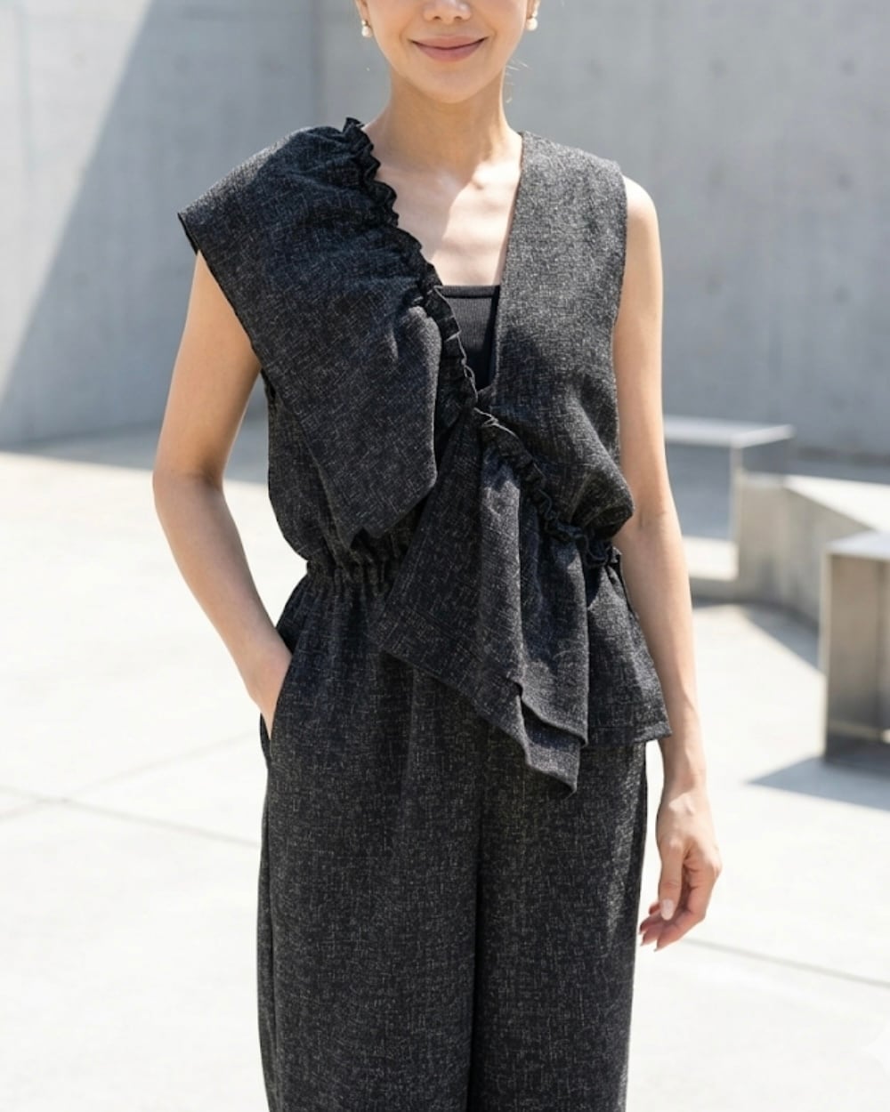 フリルを斜めにしたり、下してペプラム風にしたり様々な着こなしを楽しめます◎