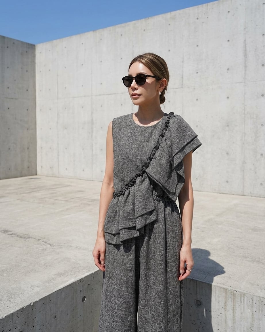メランジ調で高見えする生地を使用したマルチウェイのコンビネゾン