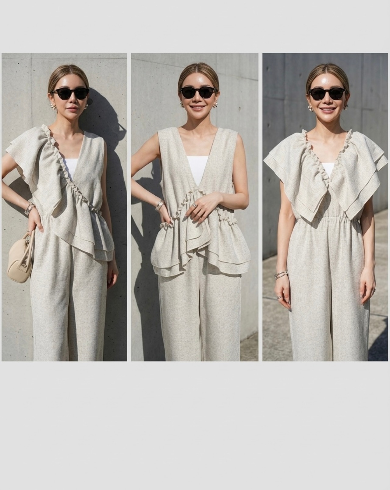 フリルの位置を変えて気分やシーンに合わせてアレンジ自在!