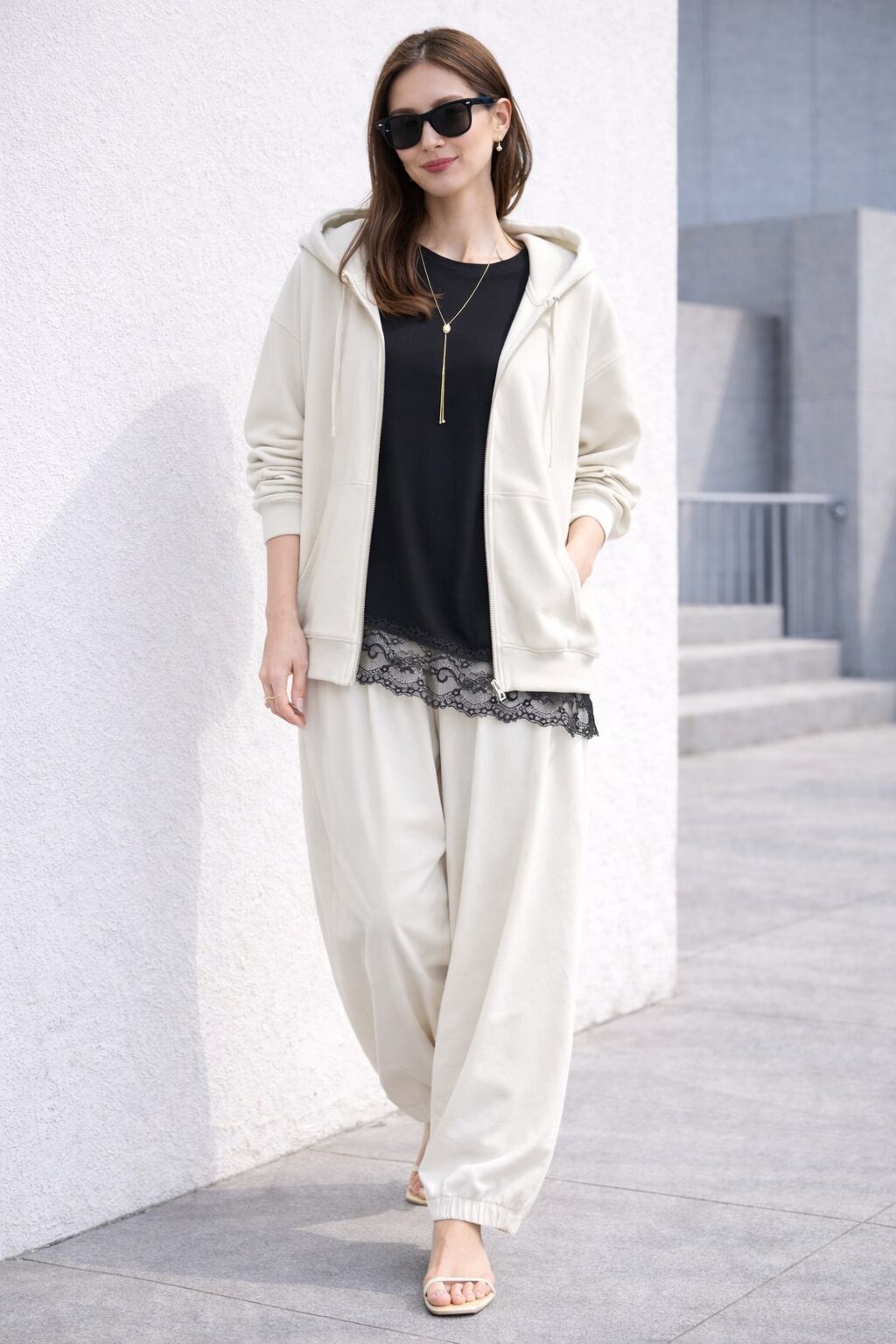トレンドのレースをあしらった女性らしさ漂うロングTシャツ