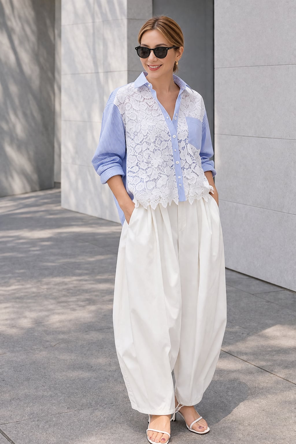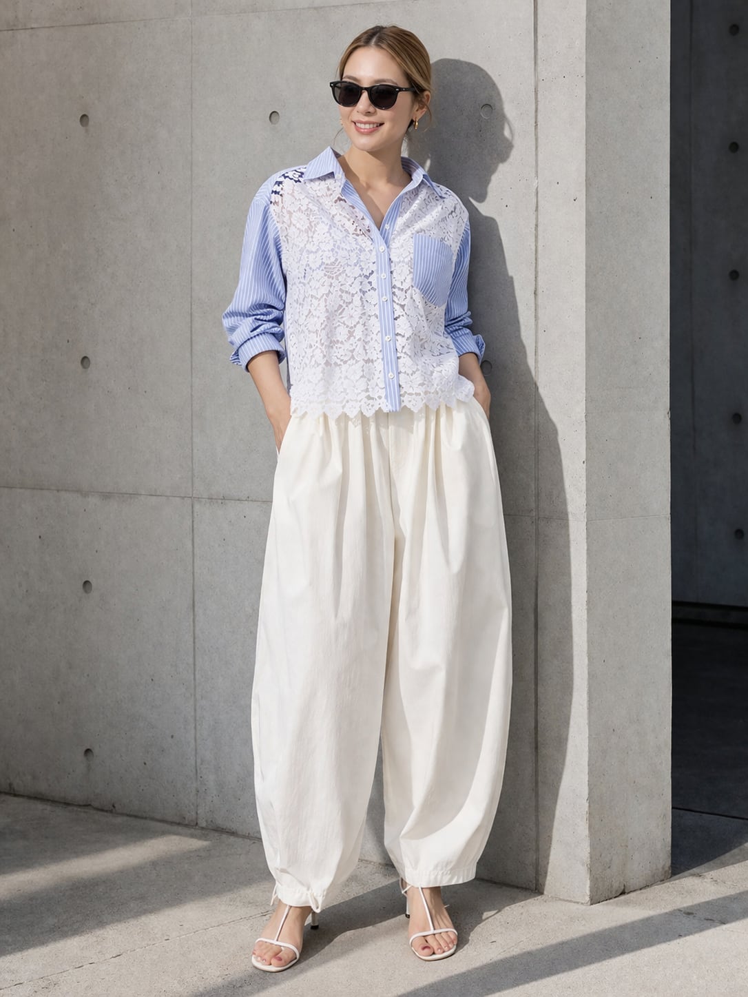 上品なレースとストライプのブラウス