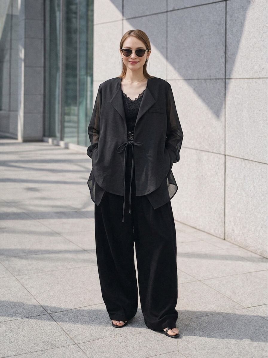 前後で生地が切り替わった、個性派デザイン。
