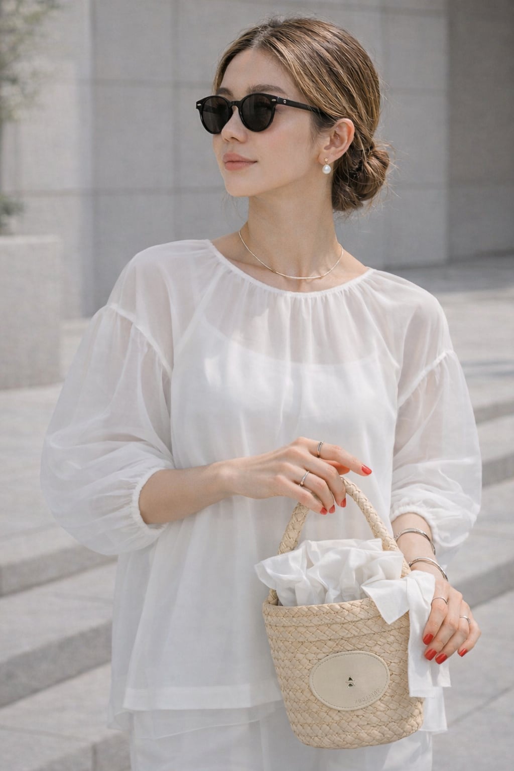 シンプル無地にトレンドのシアー重ねがポイント☆