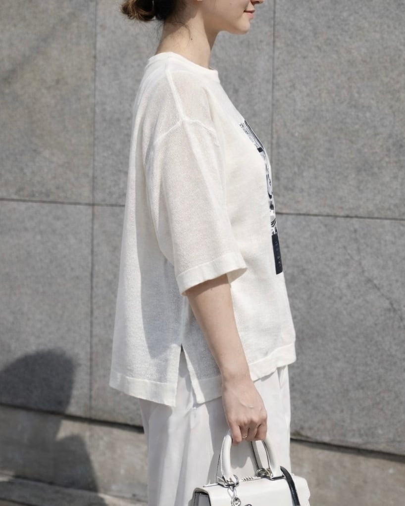 ニットにプリント加工をすることで、普段着にしやすく、カジュアルな雰囲気にさせてくれる一着です。