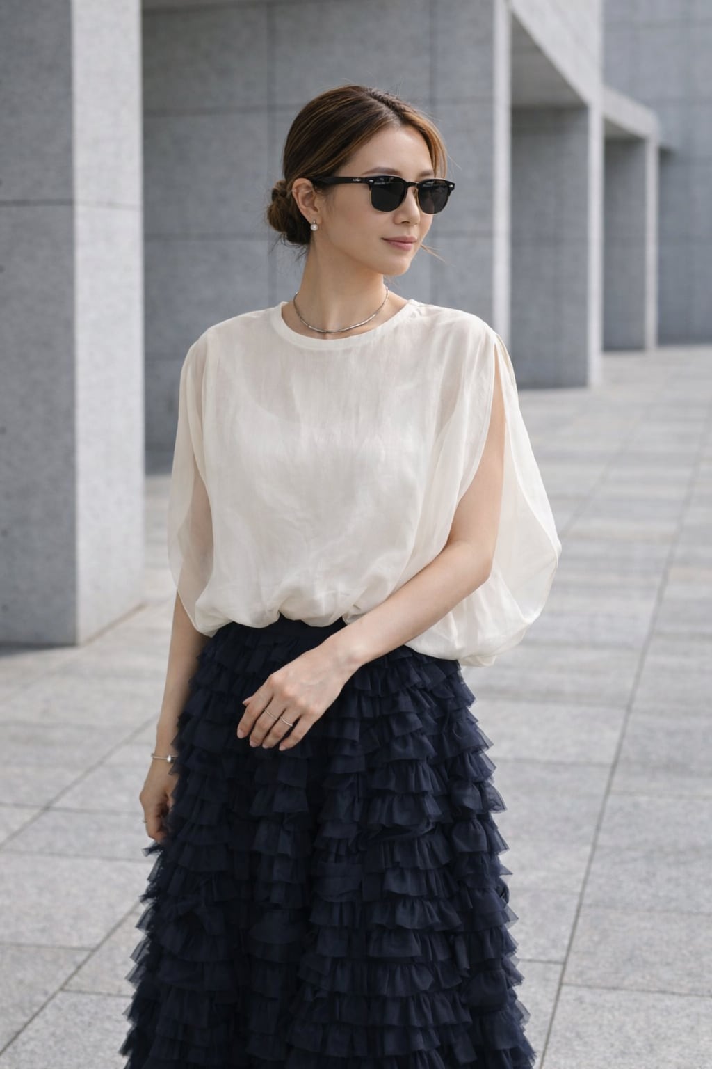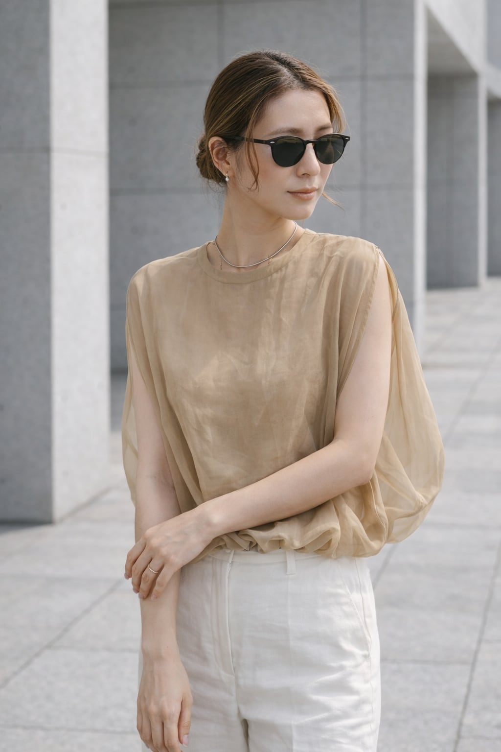 透け過ぎないオーガンジーと二の腕周りが隠れるデザイン袖が特徴◎